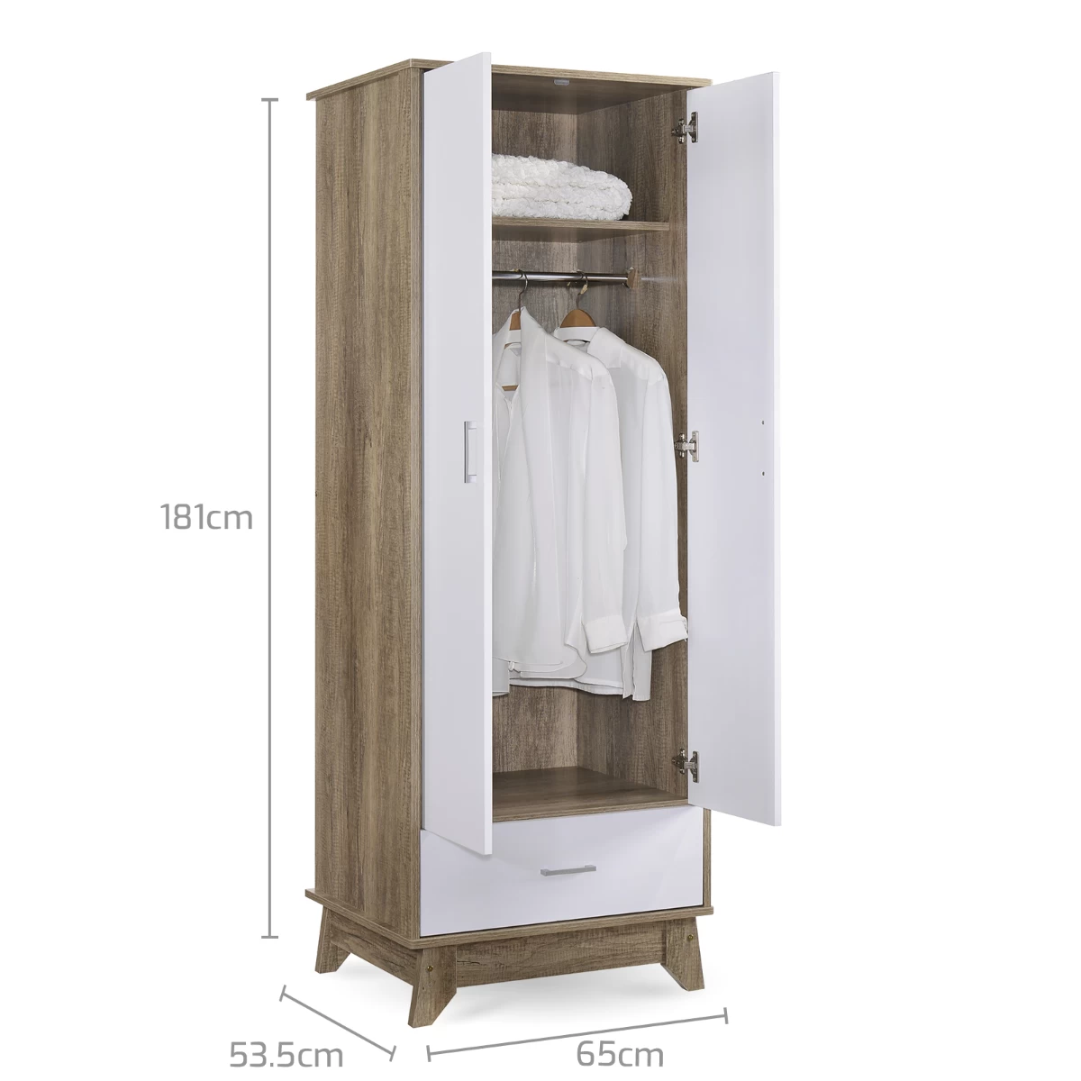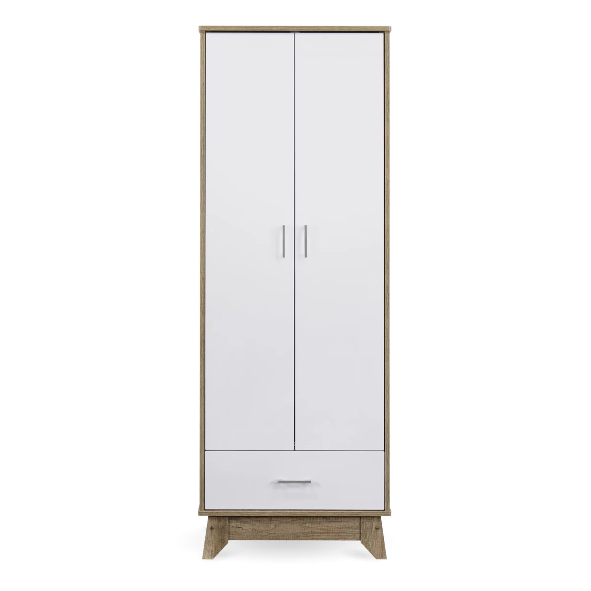 With its 180 cm height, you can store more than enough belongings underneath hanging clothes, not to mention 2 spacious drawers are included as well. On top of durability and functionality, this wardrobe features a sharp two-toned contrast between our signature oak and clean white colour, making this wardrobe stand out immediately and brighten up your bedroom.