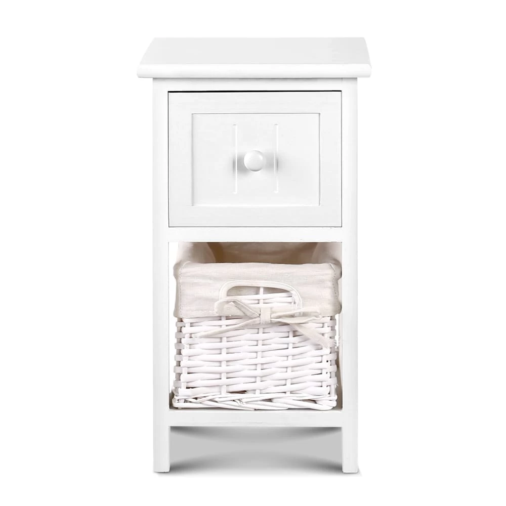 A rustic and cottage feel with practical aesthetics. That is what our Claire Bedside Table stands for. With a country-style design and a delightful wicker basket as added storage, the bedside table is charming and appealing in every way. Made of Paulownia wood, the frame is strong and sturdy and the MDF and plywood drawer offers deep storage space with smooth movements for a hassle-free use. The wicker basket has a removable linen covering that can be easily cleaned. Perfect for use in any room setting, the Claire bedside table is matches any decor with its white and pleasant hues.