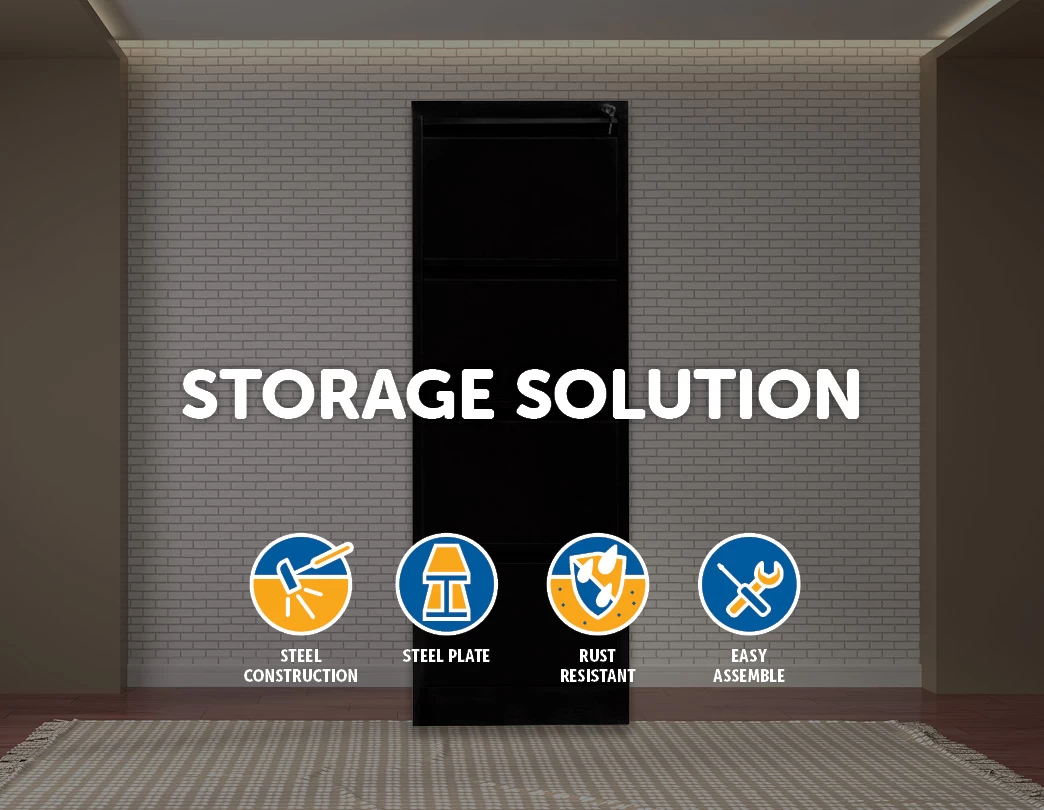 The cabinet is constructed with solid cold-rolled steel plate for excellent sturdiness and durability, not to mention an attractive look. The steel is also powder-coated to resist corrosion. The cabinet measures 132 x 46 x 60 cm, and the maximum recommended weight capacity is approximately 40kg per drawer. Privacy and security are assured with a simple lock and key design. There are spaces designated for labels to help identify drawers. Assembly is straightforward, and full assembly instructions are included. The lock comes with 2 keys.