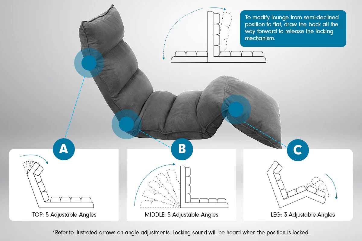 Adjustable Cushioned Floor Lounge Chair 174 X 56 X 15cm – Charcoal