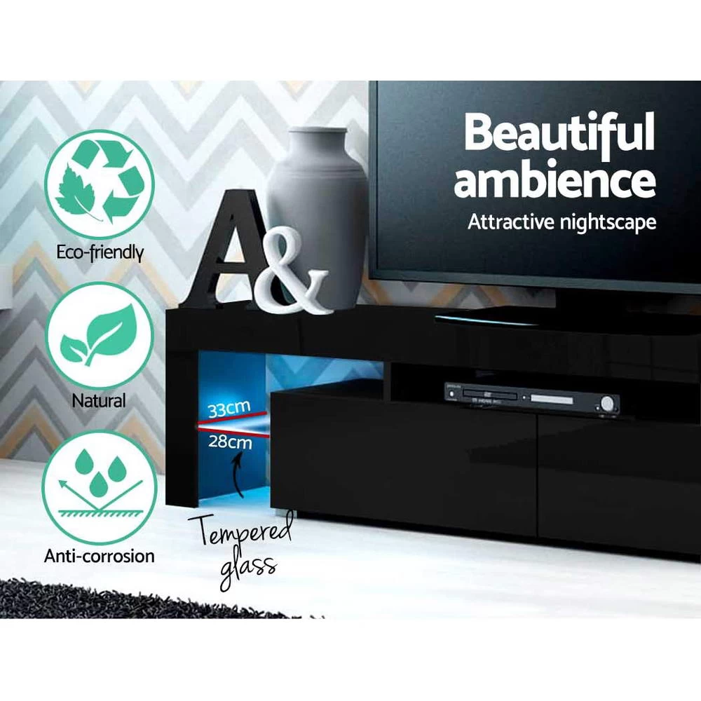 Now you can even watch television or play video games in style with our Artiss LED Entertainment Unit. The unit comes with built-in RGB LED lighting that can be customised into 16 different colours and 4 different flashing modes to suit your preference. Not only does the entertainment unit create a beautiful ambience, it is certain to be a showstopper that will wow all your houseguests. The unit will be the perfect addition for your modern living room with its contemporary and linear design. The two drawers have a handle-less design to maintain the sleek appearance and they provide ample storage for all your entertainment paraphernalia.