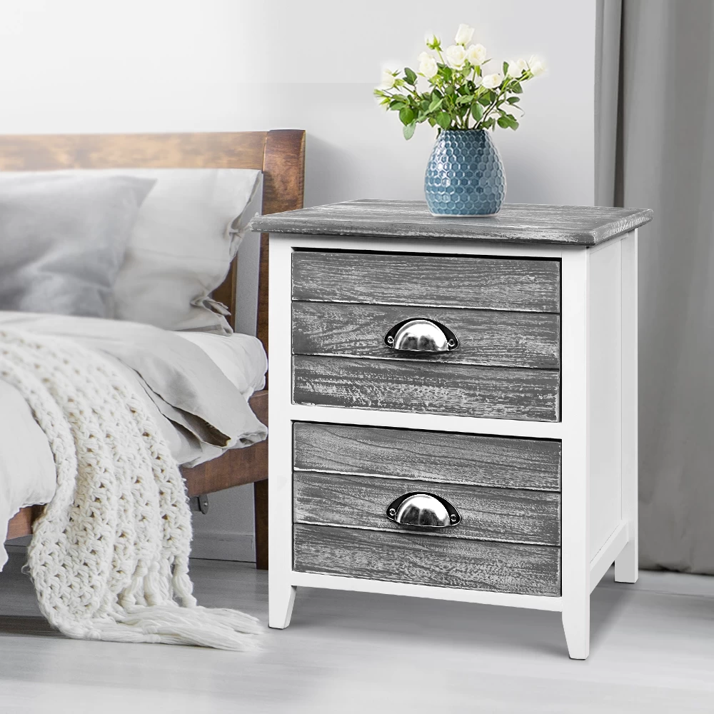 With its vintage chic, our Artiss Sage Bedside Table is as stylish as it is practical. The 18cm thickness Paulownia wood and MDF construction ensure that the furniture piece is able to withstand daily robust use. The drawers are deep and run smoothly. Use it in any space or in any room where the convenient and compact drawers will do wonders to your storage needs. Finished in an eco-friendly non-toxic paint, the ensemble also includes antique-inspired handles, a neat backing and anti-scratch feet pads.