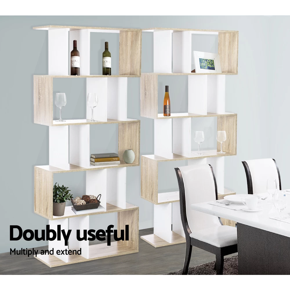 Artiss 5 Tier Display Book Storage Shelf Unit – White Brown