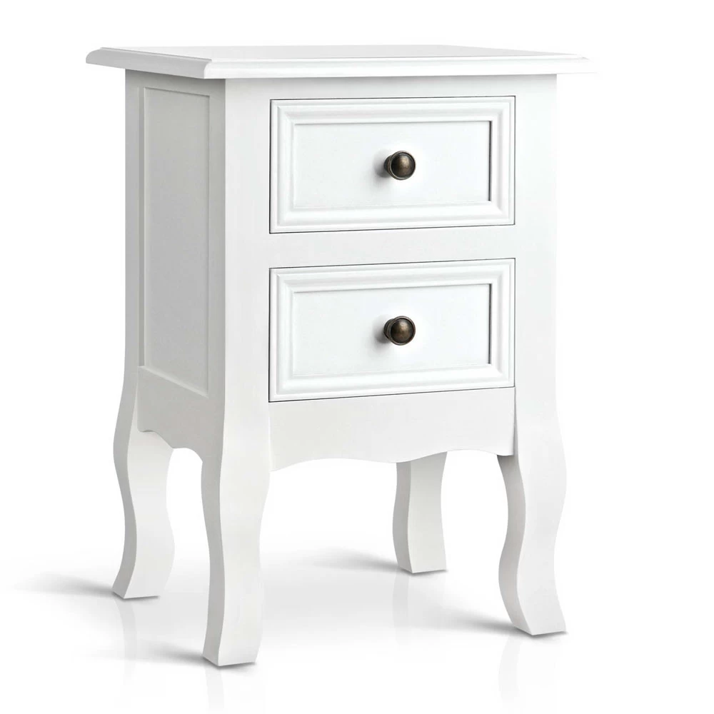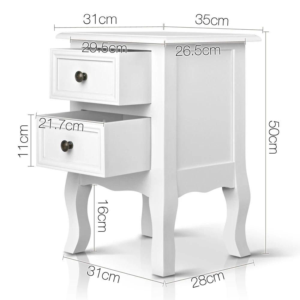 Bedside Table French Provincial Lamp Cabinet 2 Drawers Nightstand Chest White