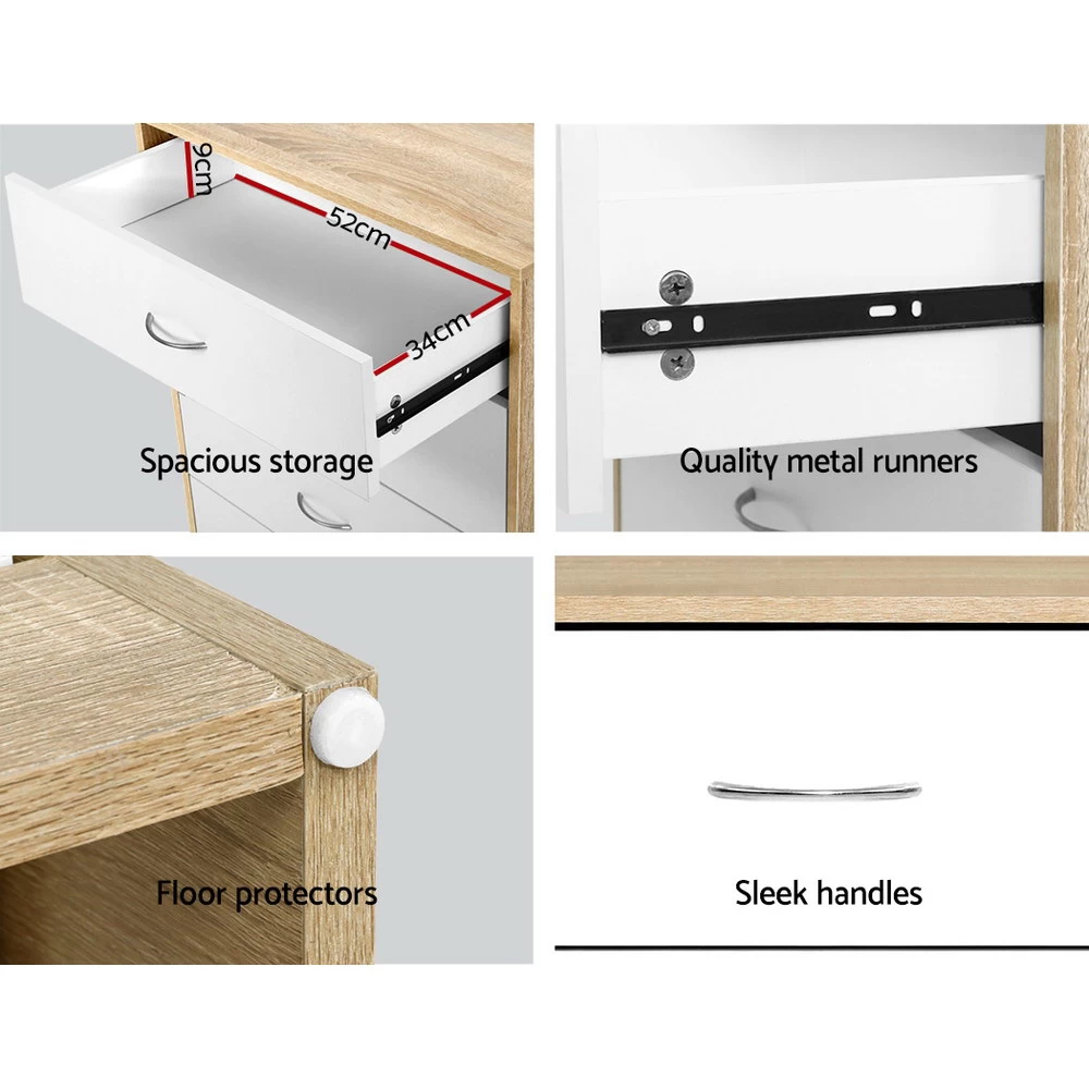 A simple and elegant design that is Scandinavian-inspired, our Artiss 4-drawer Tallboy offers full functionality with stylish cues. Made from quality particle board with smooth melamine finish, the two-tone tallboy adds some chic appeal to your decor and is the perfect choice to grace any dressing room, bedroom, living room or any other space in a discerning home or establishment. The curved cut-out base adds a unique stance to this very able tallboy that also comes with sleek curved handles and quality metal drawer runners for hassle-free use. Not least, ample storage space is found with the four generous-sized drawers for all your clothing, fashion accessories, personal essentials and more.