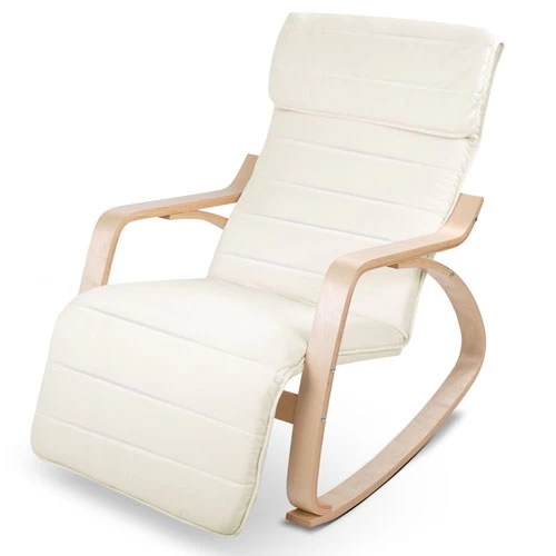 Birch Plywood Adjustable Rocking Lounge Arm Chair with Fabric Cushion Beige