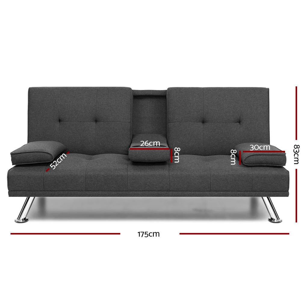 Snuggle up with our Artiss 3-Seater Sofa Bed that functions both as a gold class cinema lounge and as a spare bed for unexpected overnight guests when needed. Constructed with a wooden frame and filled with extra thick foam, our breathable faux linen upholstered sofa bed is sturdy in every way. And the chrome steel legs also add a very modern touch to the entire ensemble. It only takes a few minutes to transform from sofa to bed and three adjustable reclining positions let you enjoy your leisure at your preferred settings. The cushioned armrests are attached to the sofa bed using Velcro and can be moved to be used as pillows. The middle panel folds down to reveal two hidden cup holders so that you always have your drink handy and can enjoy the cinema experience right in your living room. Built to generous proportions, our 3-seater sofa bed can support up to 200kg in weight. Front row seats by day or lovely bed by night. You can have it all with just one sofa.