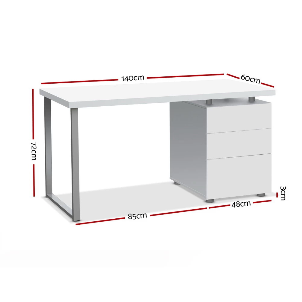 Computer Desk with 3 Drawer Cabinet White