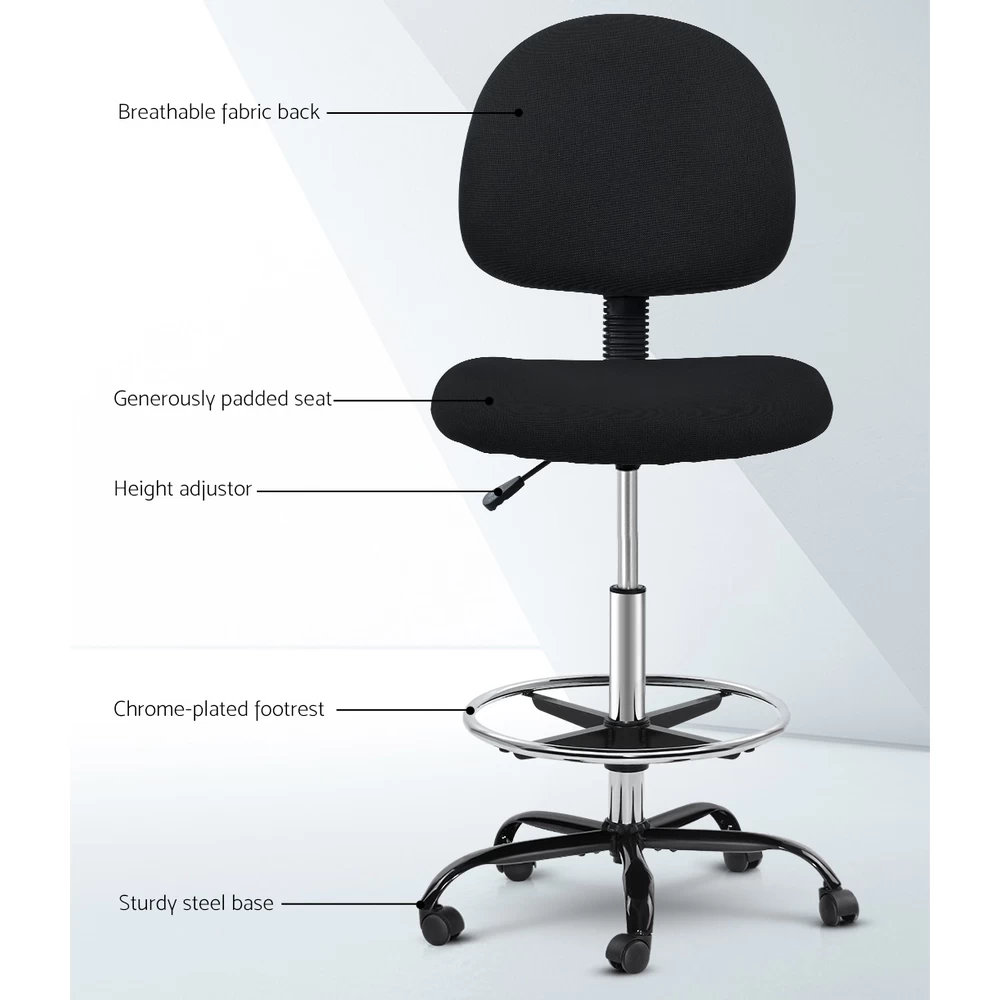 Stylish. Sleek. And practical. Our Drafting Chair is just perfect for drafting work or even other artistic pursuits with its very functional and timeless design. The thick padded seat ensures adequate comfort while the highly breathable fabric upholstery allows for long hours use with any hassles and also remains soft to the touch. The chair is adjustable for height with the SGS-approved gas lift components for quality and reliability. Plus, the adjustable chrome footrest that encircles the base of the chair is a real handy too for getting the most comfortable perch for your feet. Better still, the chair is 360 degrees rotatable for facing in any direction. Not least, the dual-wheel castors enable fast and easy mobility every time.