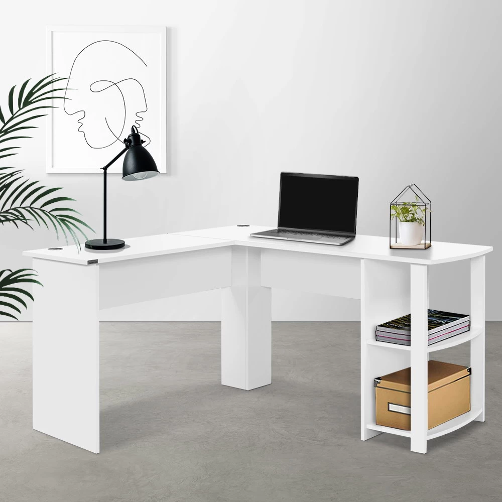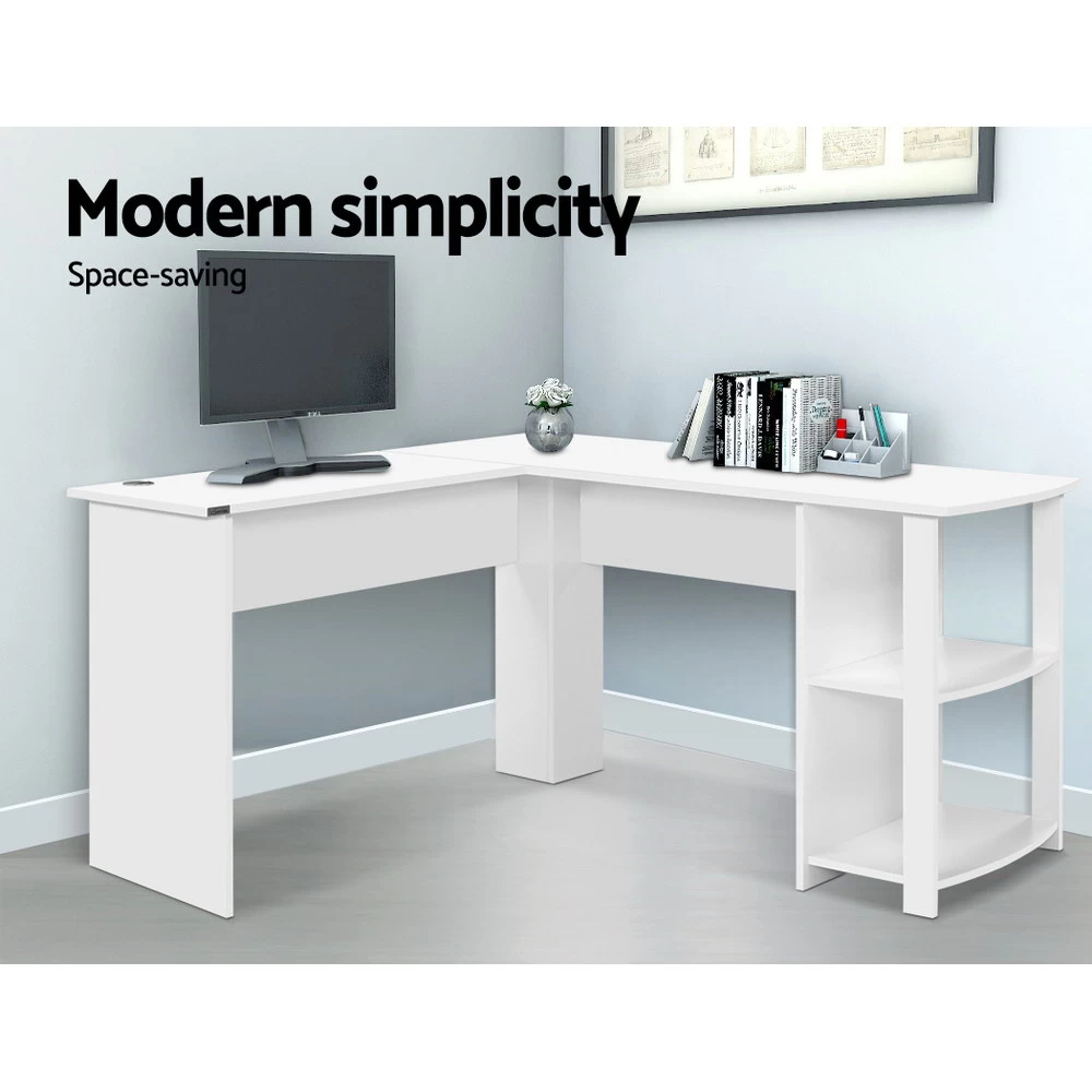 Artiss Office Computer Desk Corner Student Study Table Workstation L-Shape Shelf White