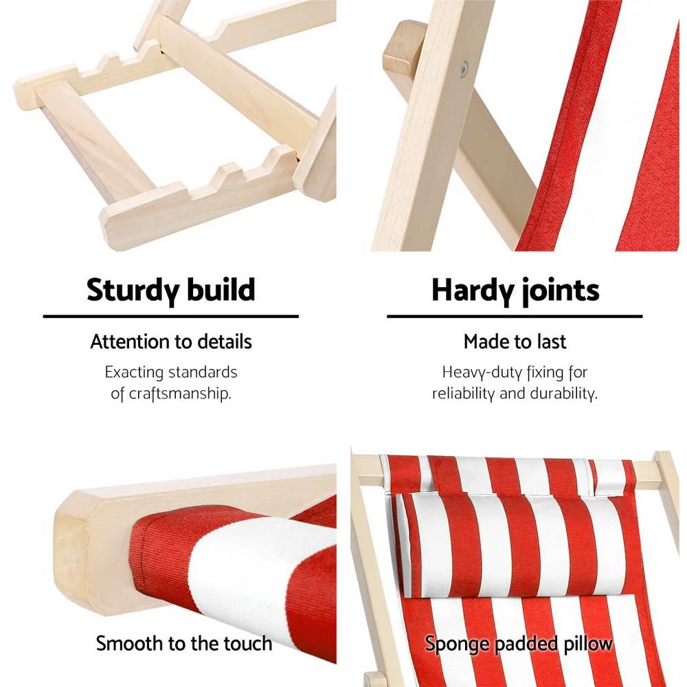 Crafted from natural Poplar wood and finished with a clear varnish, our Beach Chair is strong and sturdy with four adjustable seating positions via the backrest to suit your preference. Despite its lightweight, the Beach Chair has a weight capacity of up to 120kg and features quality craftsmanship with heavy-duty fixings all round. Likewise, the durable 600D Oxford fabric seat is designed to withstand the elements and will retain its colour and shape well in the harsh Australian climate. The well-stitched seat also comes with a bonus padded pillow of the same material for your further comfort.