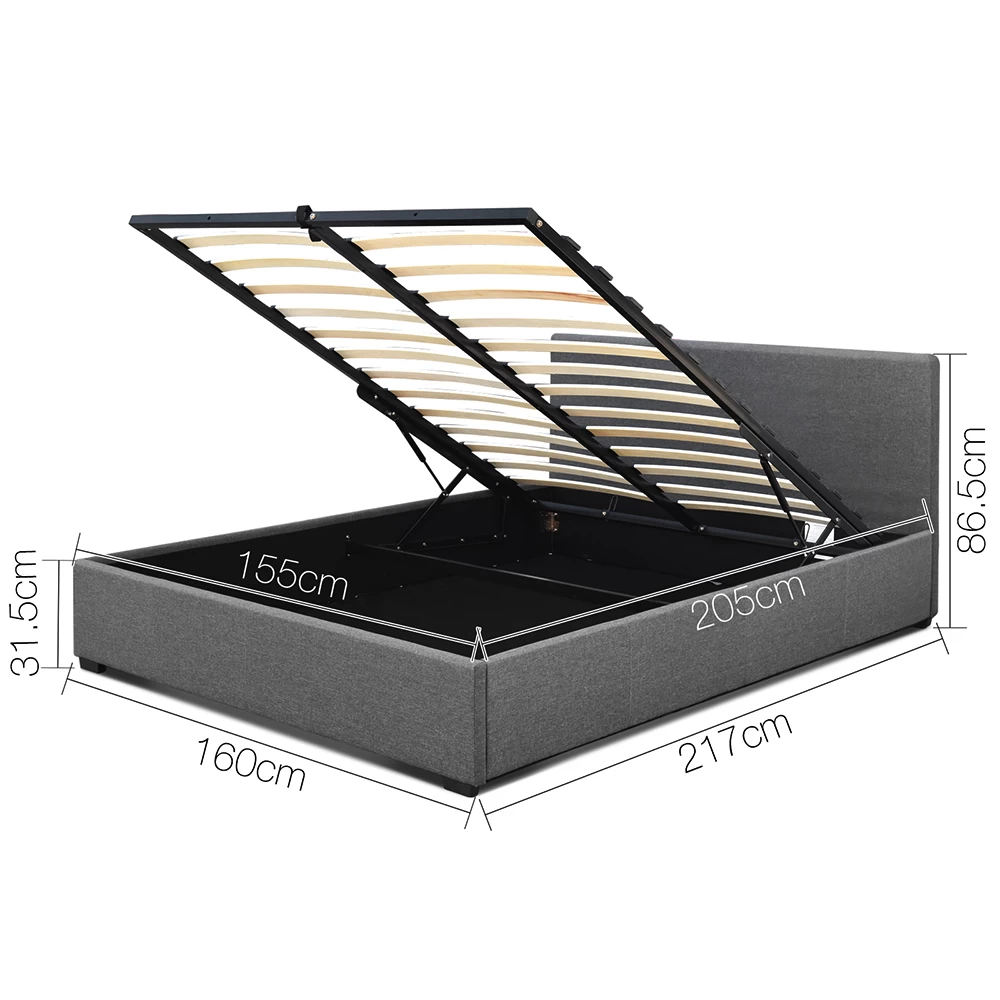 Fabric Gas Lift Bedframe Grey
