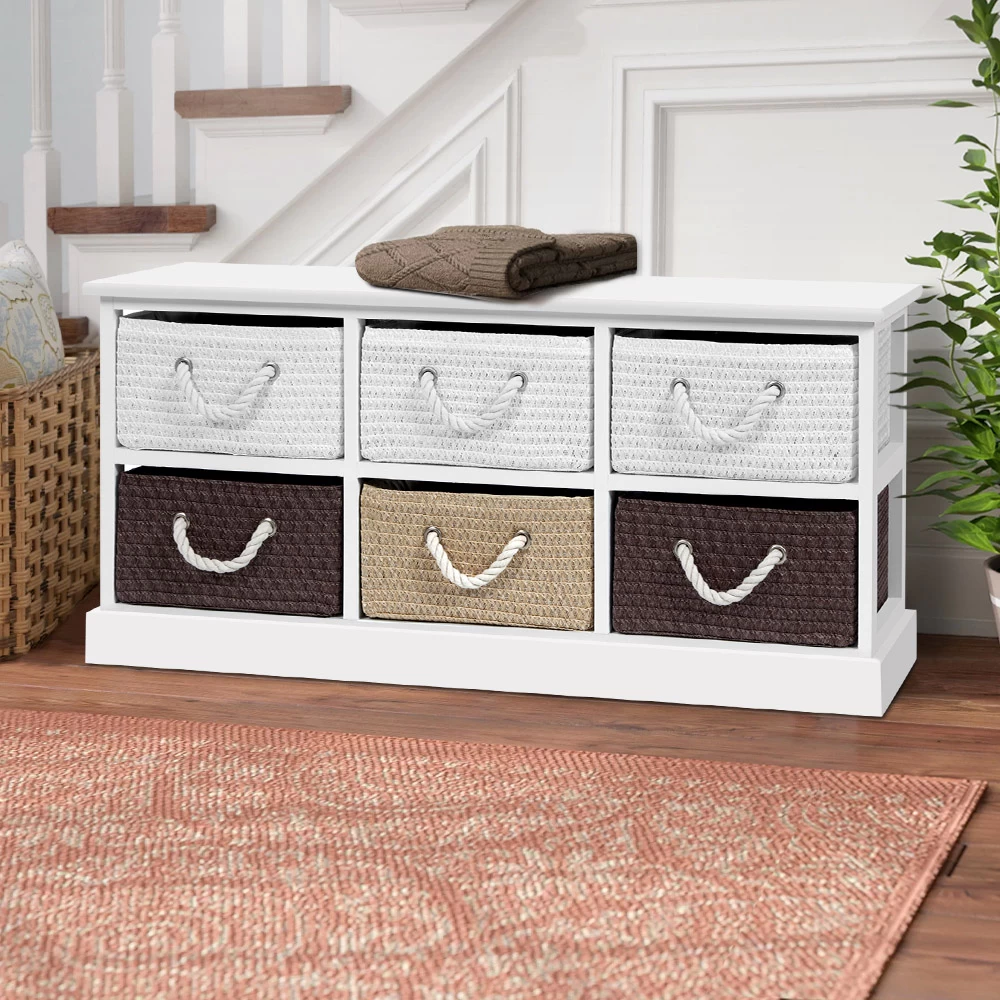 Simple and lovely. The Artiss Storage Bench is as beautiful as it is useful. Its elegant looks will sit well in any hallway, living room or bedroom. And with the six handy PP baskets in neutral tones, you can store a myriad of household or personal essentials with minimum fuss. The baskets can also be easily removed to create storage for different items such as footwear and display collectibles. Plus, the string handles do add a rustic touch to this stylish ensemble. Better still, the unit can also double up as a comfortable bench to add additional seating to your space. Made of a durable Paulownia wood frame with 15mm thick MDF boards, the storage bench is strong and sturdy even with daily robust use. Not least, the anti-scratch floor protectors enable you to use it with total peace of mind.