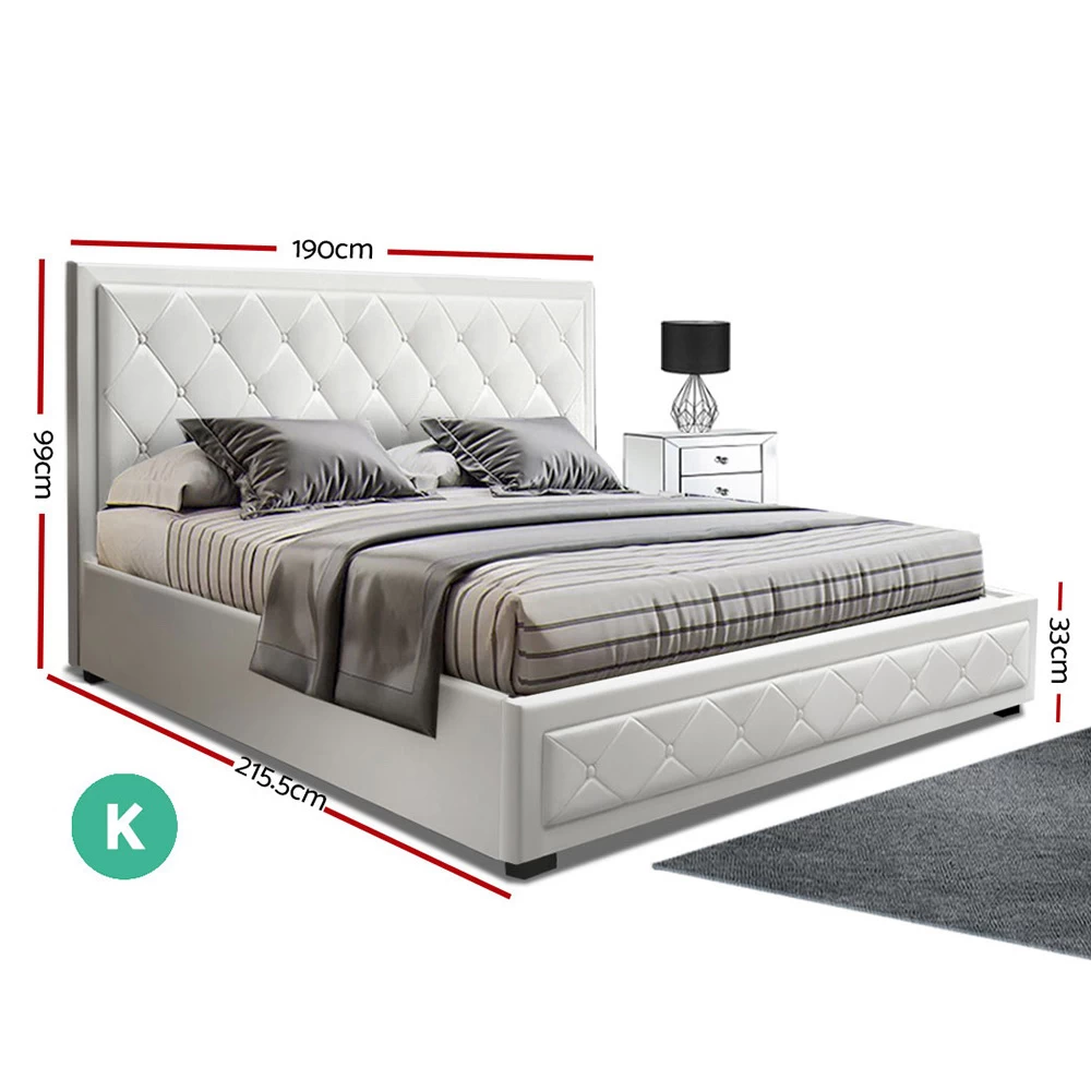 From the outside, our contemporary Artiss Tiyo Gas Lift Bed Frame looks absolutely plush. The premium PU leather tufted headboard and sides all exudes fine craftsmanship. But there is more to this luxurious bed frame than meets the eye. Lift up the frame and you will find acres of storage space under the wooden arched slat base. The gas lift system and hand strap enable you to effortlessly lift the bed to store all your seasonal beddings and linen such as extra quilts, pillows and comforters and more. The wooden arched slat base is also designed to flex appropriately so that it can better distribute the weight exerted on it. Overall, the bed frame is well-built with reinforced steel bars within its sturdy steel frame. Heavy-duty metal connectors keep the frame sturdy with additional central support from an adjustable centre support beam.
