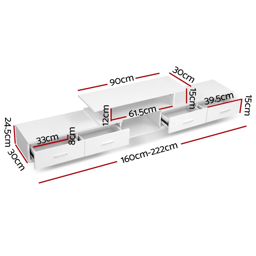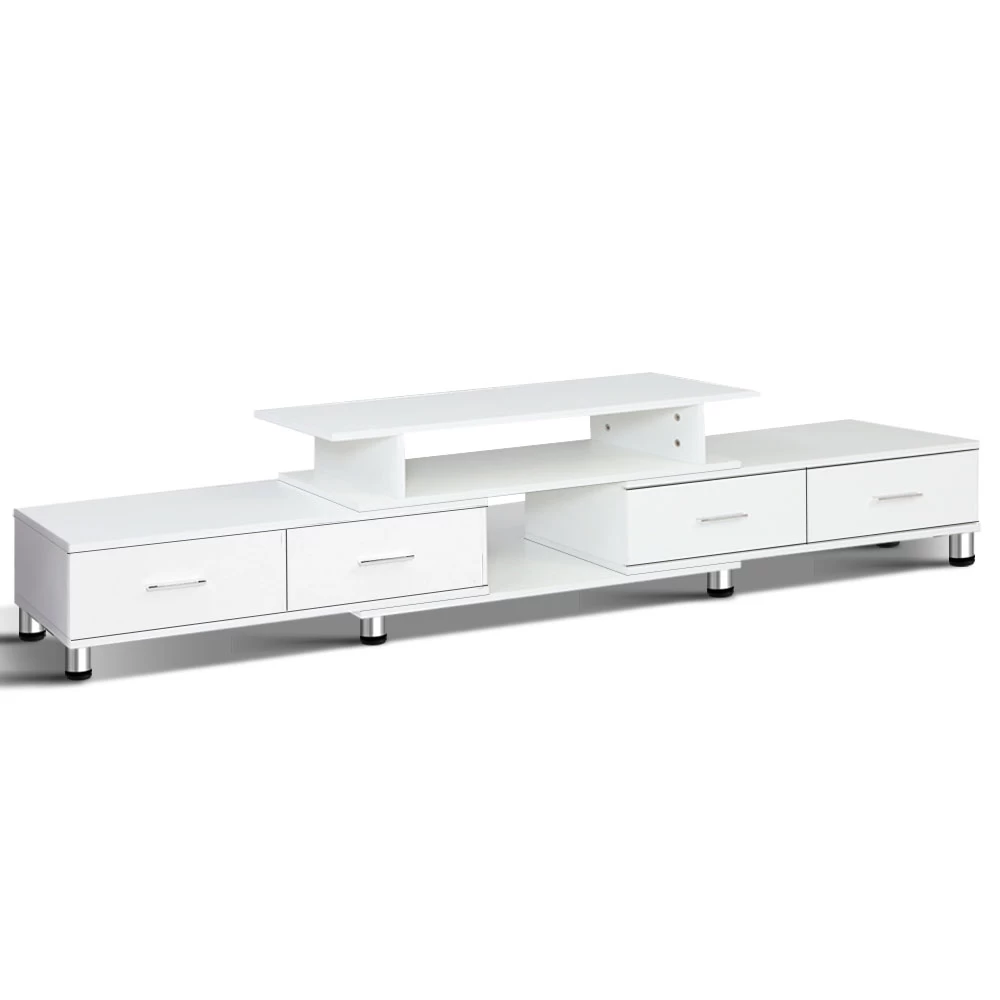 More than just a spacious TV cabinet, our 3-in-1 Artiss Entertainment Unit extends its function and purpose beyond the norm. Of course, the generous storage space, from the two open shelves and four drawers, are there to contain all your entertainment paraphernalia. The sleek and long top surface will also easily accommodate any large-screen TV. But more than that, the unit is able to be arranged differently to suit your space requirements, thanks to its combination of three smaller units to make one large unit. As such, you can choose to extend or reduce the length according to the room. Just perfect for any makeovers or a change to spice things up with the décor. Not least, the unit is constructed from quality particle board with a smooth melamine finish for easy upkeep. With such flexibility, it is little wonder that our 3-in-1 entertainment unit is the chosen one for discerning homemakers.