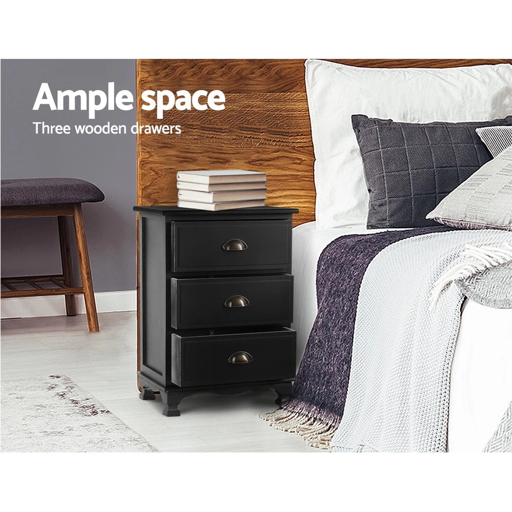 With its charming retro appeal and curved accents, our Artiss 3-drawer Storage Cabinet exudes timeless elegance all over. The three deep drawers with vintage metal handles provide ample space for practical storage and are anti-slip.. Crafted from solid Paulownia wood, the cabinet is stable and durable and features round corners for safe use and anti-scratch feet pads to keep floors and surfaces pristine even with robust use. Best of all, the cabinet comes fully assembled and a wall mount is included as an extra safety measure.