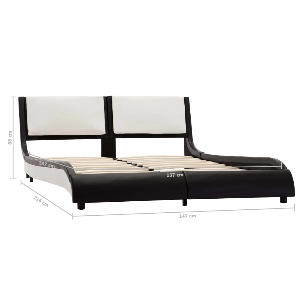 Instantly add an impressive modern taste to your bedroom with our elegant bed frame! This classic bed frame with a comfortable backrest will become the focal point of your bedroom. Distinguished by an understated yet elegant design, this bed frame adds a touch of elegant charm to your bedroom decor. Made of powder-coated iron, plywood and MDF, this bed frame is exceedingly sturdy and durable. The powder-coated steel legs add extra durability to the bed. Additionally, upholstered in durable faux leather, the bed exudes an inviting look. Thanks to the soft backrest, you can watch TV or read book comfortably. This bed frame is suitable for a mattress of 137 x 187 cm. Please note that delivery includes a bed frame only; a mattress is not included. The bed is easy to assemble. You can check our shop for the matching mattresses.