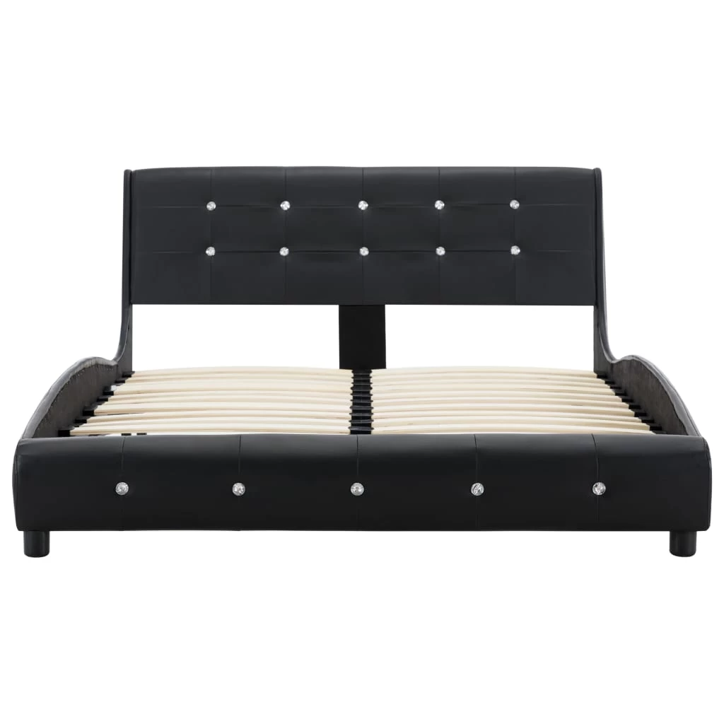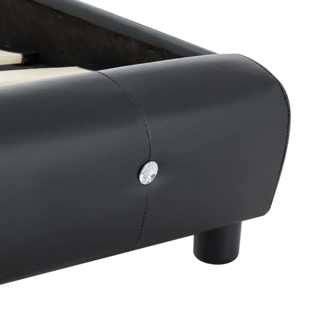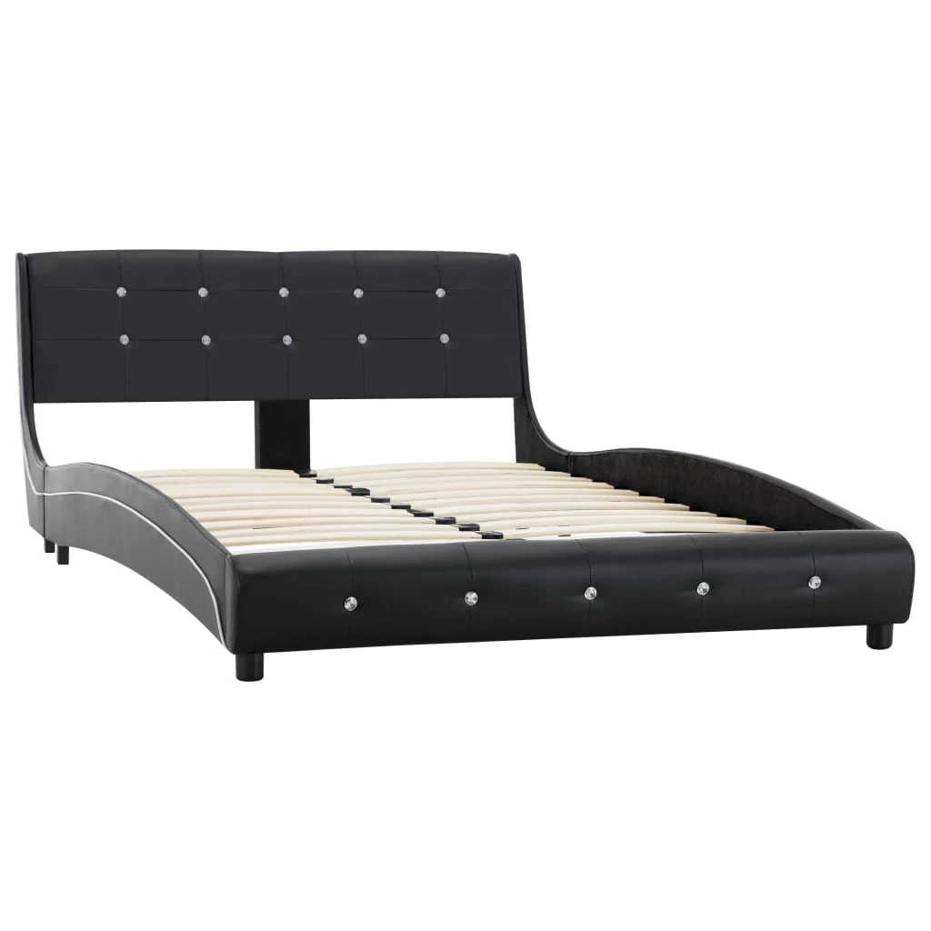 This classic bed frame will become the focal point of your bedroom. Distinguished by an understated yet elegant design, this bed frame adds a touch of elegant charm to your bedroom decor. Made of iron and wood, this bed frame is exceedingly sturdy and durable. The powder-coated steel legs add extra durability to the bed. Additionally, upholstered in durable faux leather, the bed exudes an inviting look. This bed frame is suitable for a mattress of 106 x 203 cm. Please note that delivery includes a bed frame only; a mattress is not included. The bed is easy to assemble.