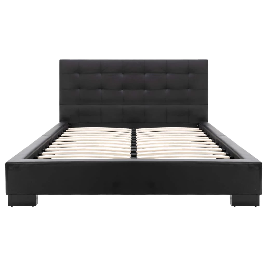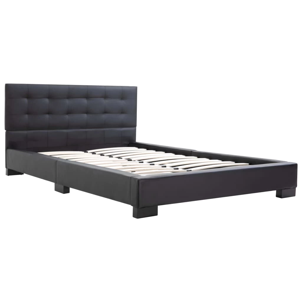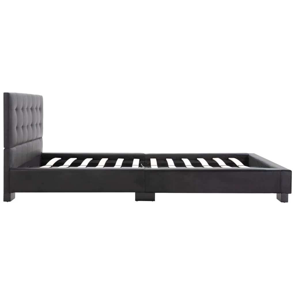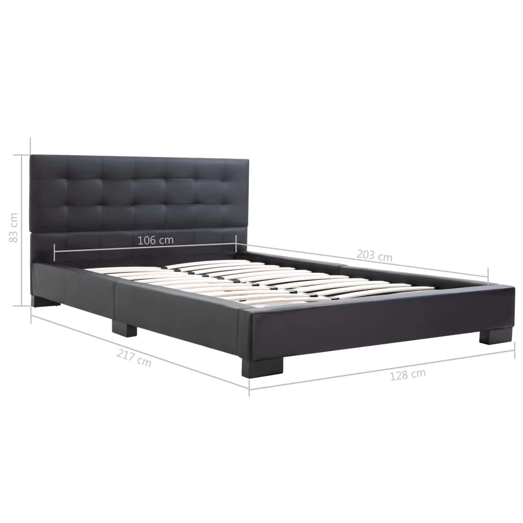 This classic bed frame will become the focal point of your bedroom. Distinguished by an understated yet elegant design, this bed frame adds a touch of elegant charm to your bedroom decor. Made of wood and steel, this bed frame is exceedingly sturdy and durable. The solid rubber wood legs add extra durability to the bed. Additionally, upholstered in artificial leather, the bed exudes an inviting look, and it is easy to clean. This bed frame is suitable for a mattress of 106 x 203 cm. Please note that delivery includes a bed frame only; a mattress is not included. The bed is easy to assemble.