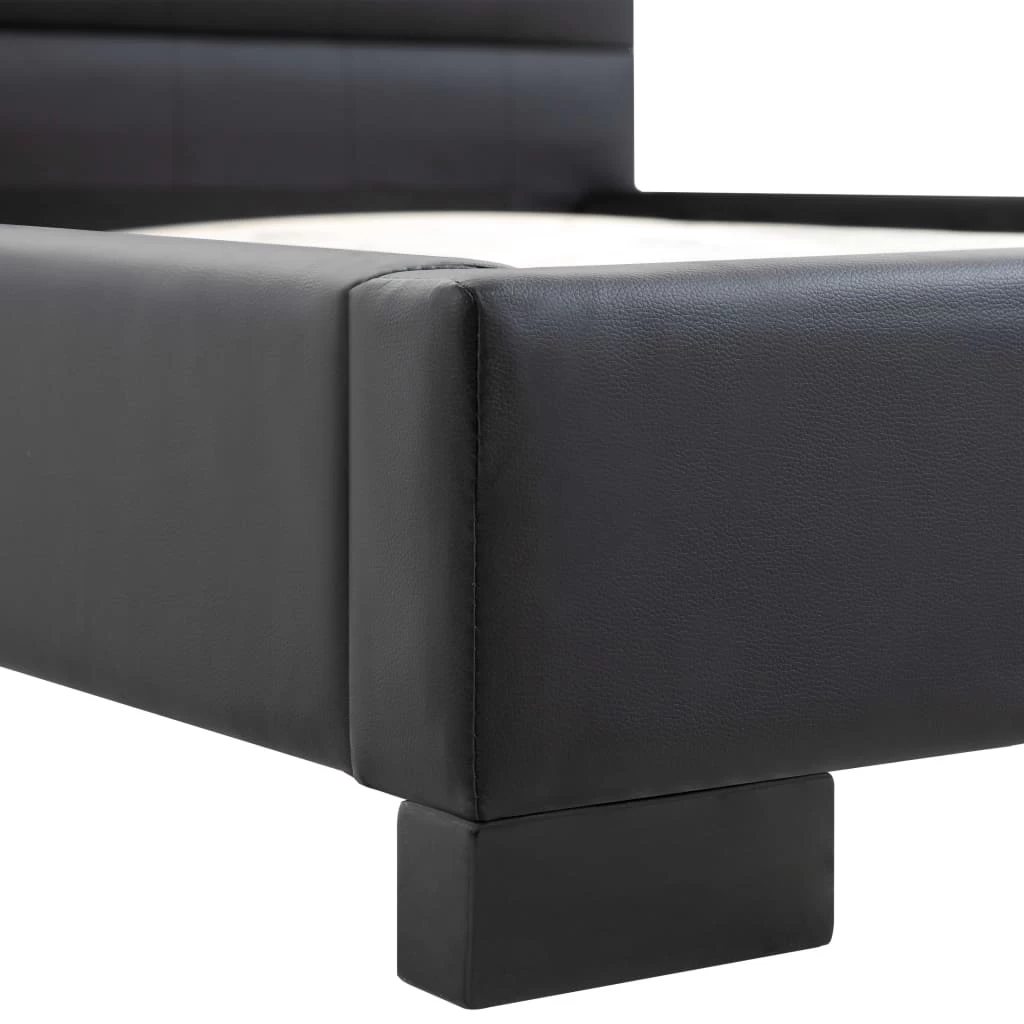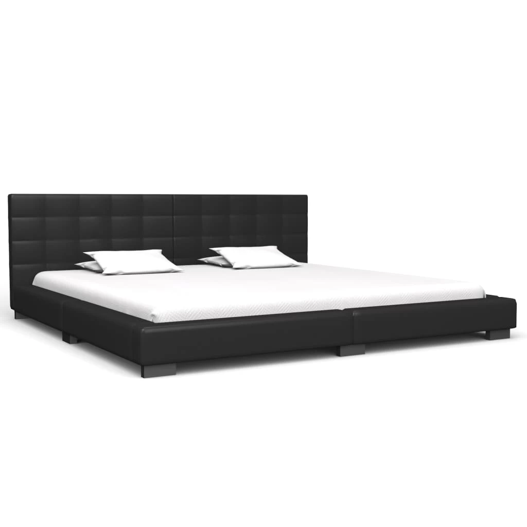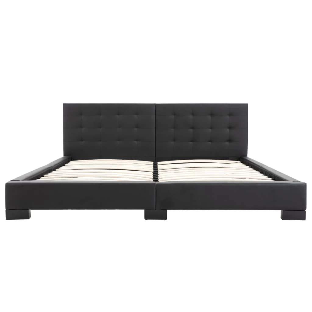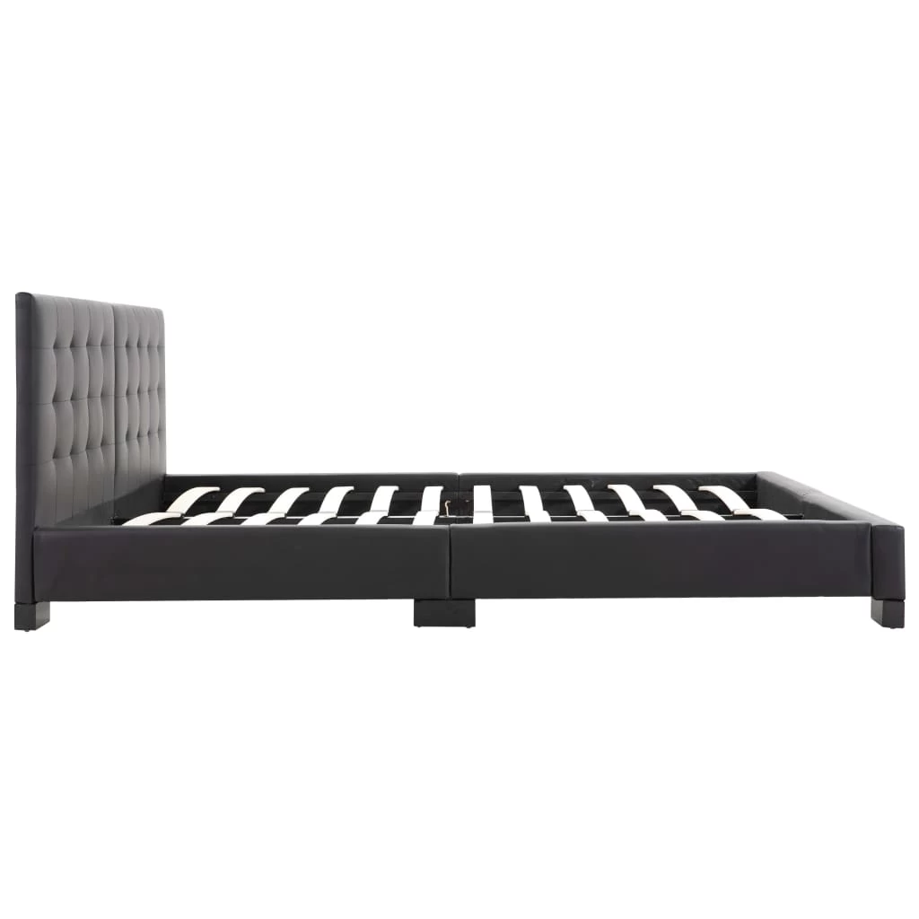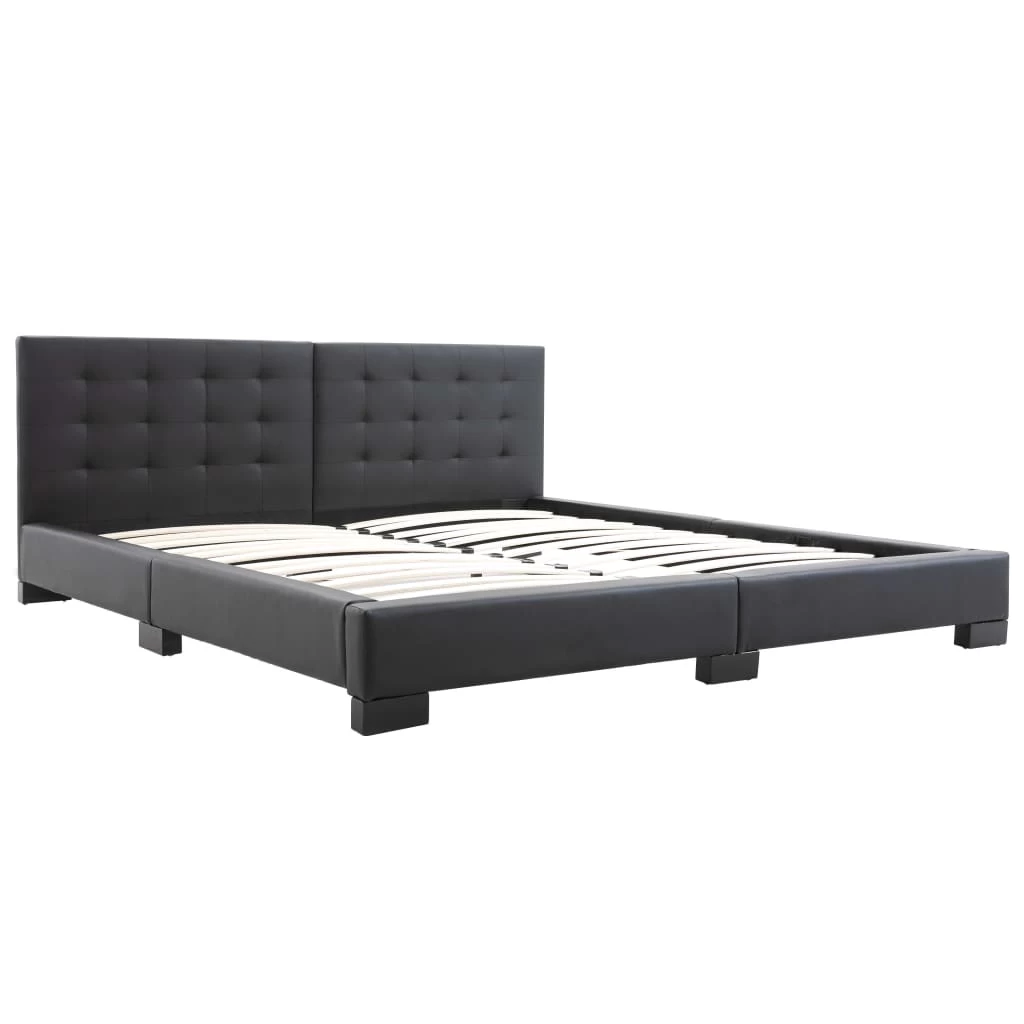 This classic bed frame will become the focal point of your bedroom. Distinguished by an understated yet elegant design, this bed frame adds a touch of elegant charm to your bedroom decor. Made of wood and steel, this bed frame is exceedingly sturdy and durable. The solid rubber wood legs add extra durability to the bed. Additionally, upholstered in artificial leather, the bed exudes an inviting look, and it is easy to clean. This bed frame is suitable for a mattress of 183 x 203 cm. Please note that delivery includes a bed frame only; a mattress is not included. The bed is easy to assemble.