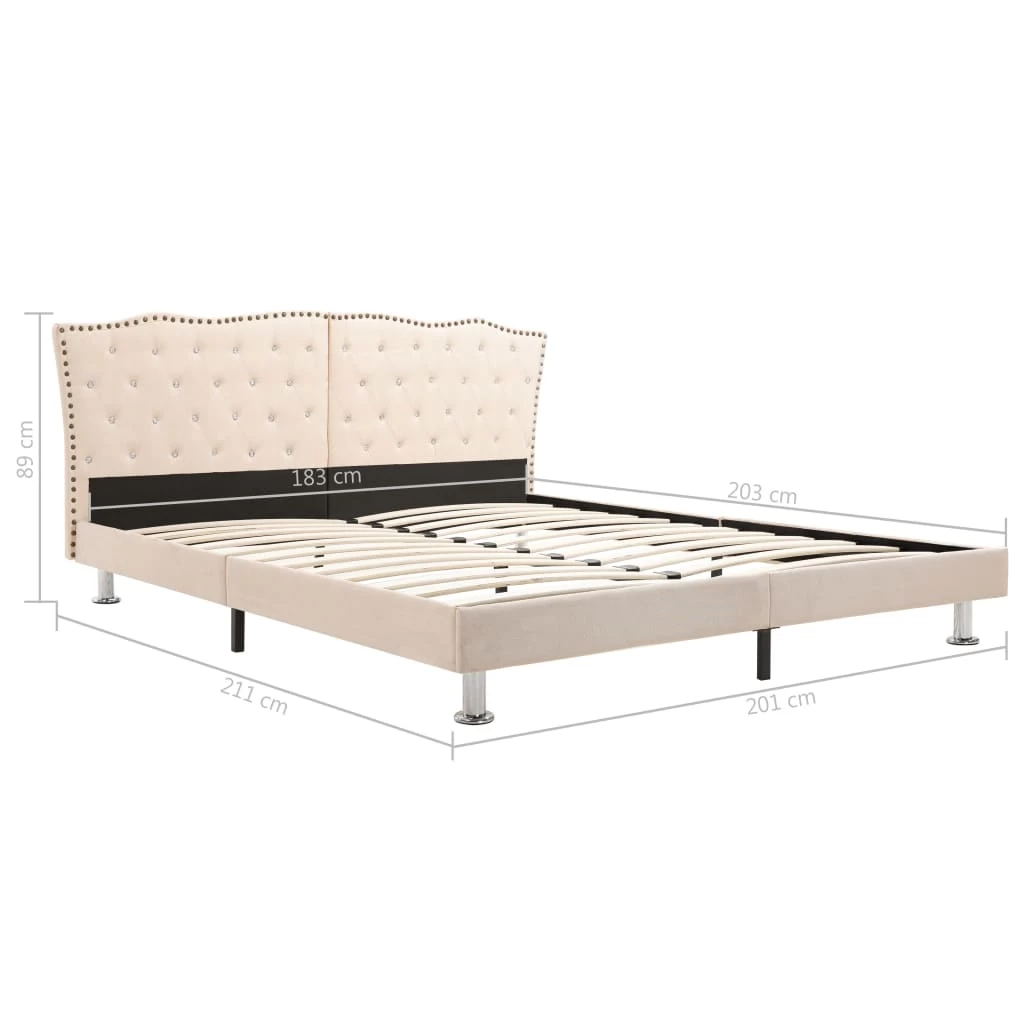 This classic bed frame will become the focal point of your bedroom. Distinguished by an understated yet elegant design, this bed frame adds a touch of elegant charm to your bedroom decor. Made of wood and steel, this bed frame is exceedingly sturdy and durable. The steel legs add extra durability to the bed. Additionally, upholstered in durable fabric, the bed exudes an inviting look, and it is easy to clean. This bed frame is suitable for a mattress of 183 x 203 cm. Please note that delivery includes a bed frame only; a mattress is not included. The bed is easy to assemble.