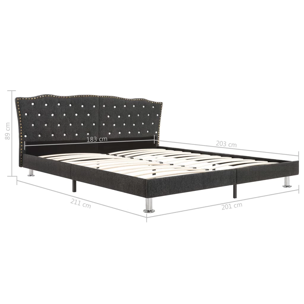 This classic bed frame will become the focal point of your bedroom. Distinguished by an understated yet elegant design, this bed frame adds a touch of elegant charm to your bedroom decor. Made of wood and steel, this bed frame is exceedingly sturdy and durable. The steel legs add extra durability to the bed. Additionally, upholstered in durable fabric, the bed exudes an inviting look, and it is easy to clean. This bed frame is suitable for a mattress of 183 x 203 cm. Please note that delivery includes a bed frame only; a mattress is not included. The bed is easy to assemble.