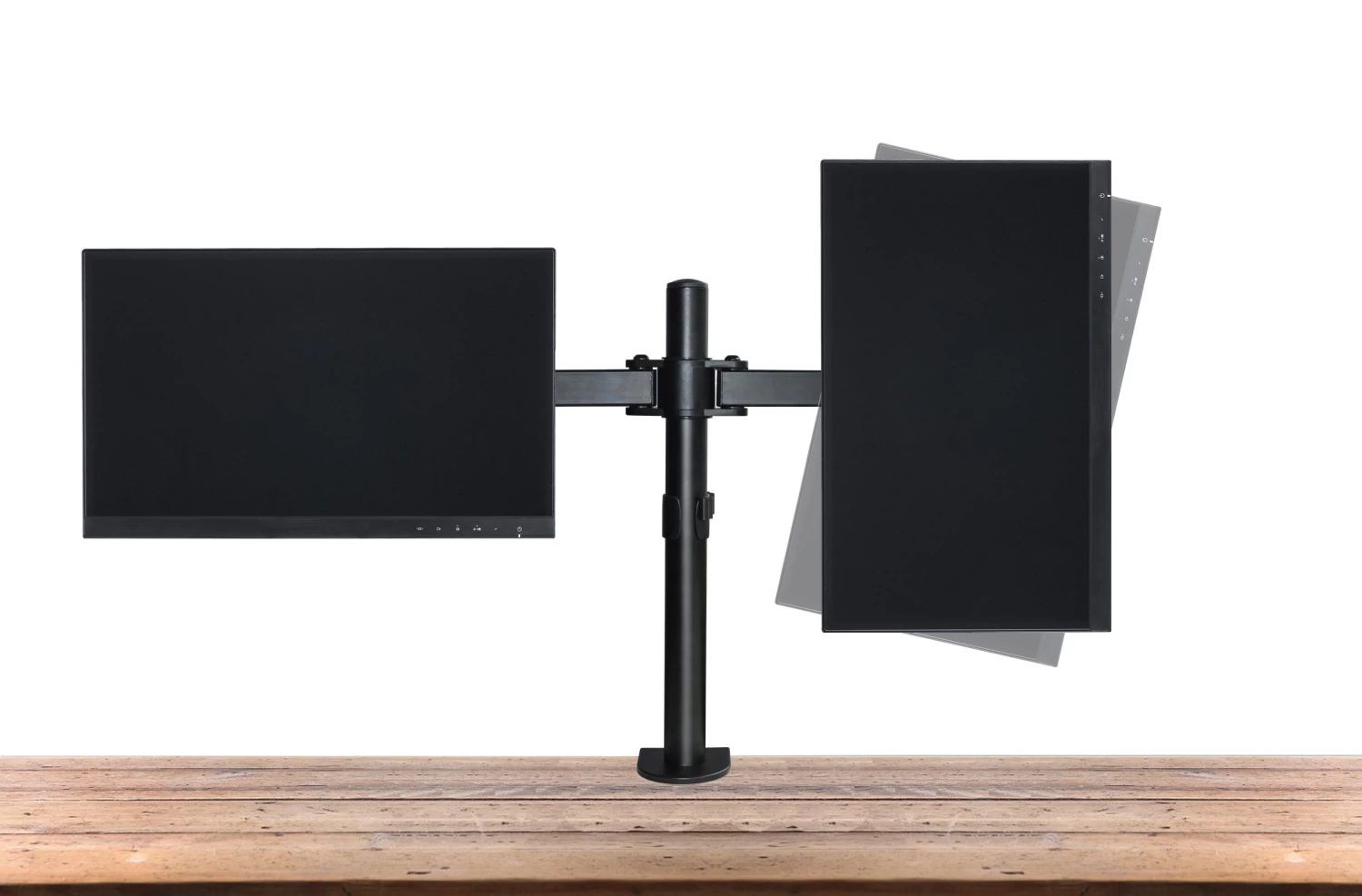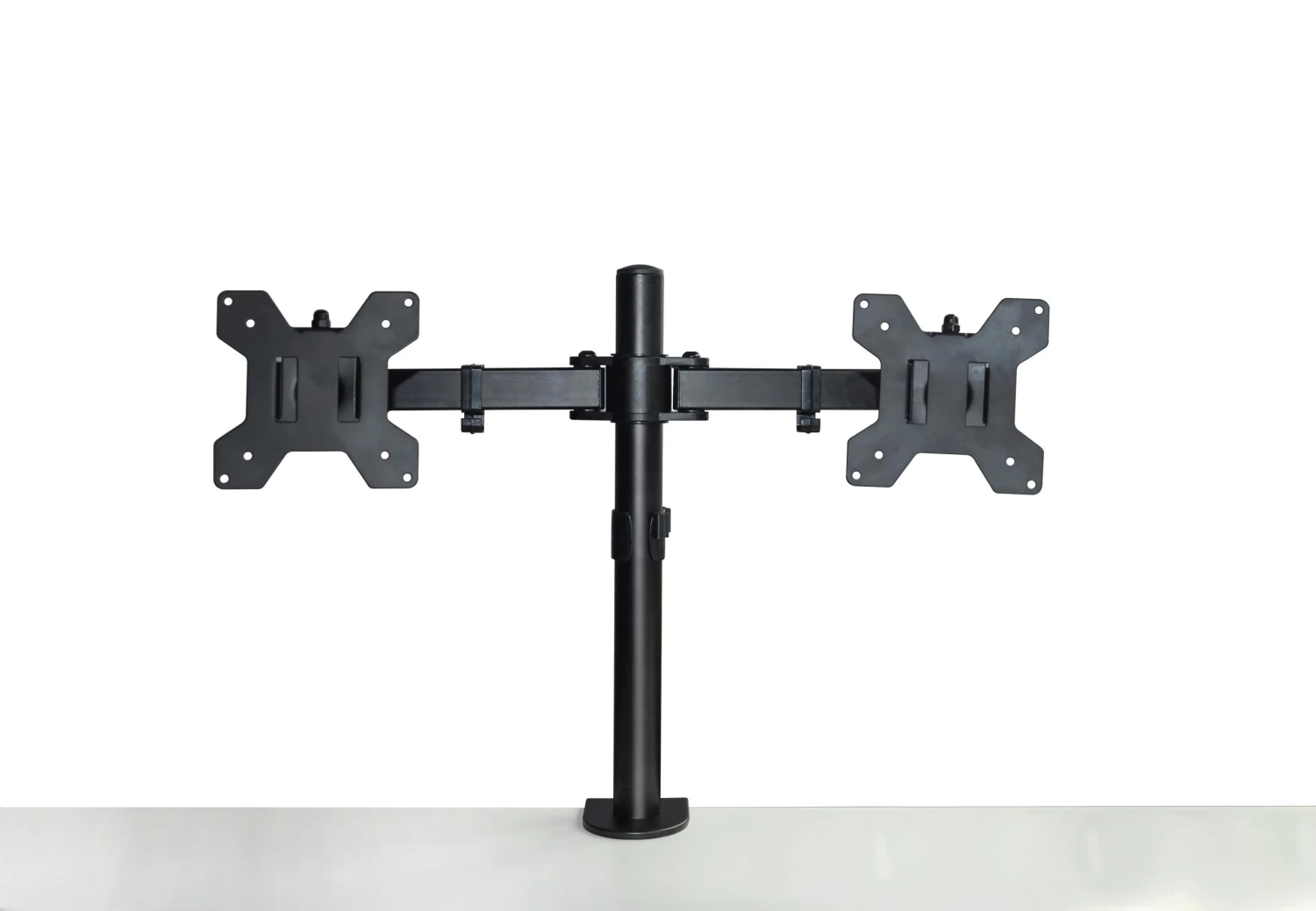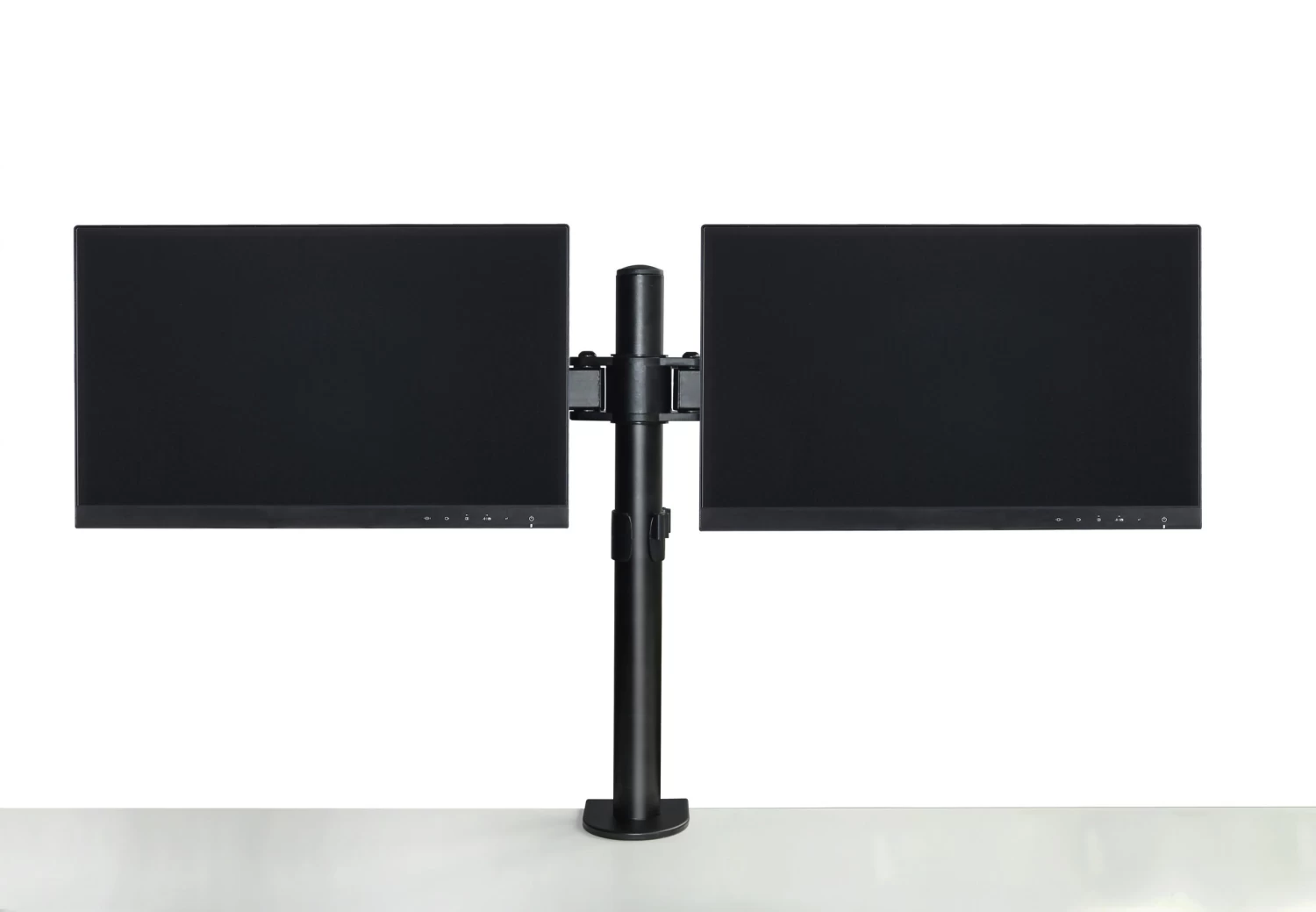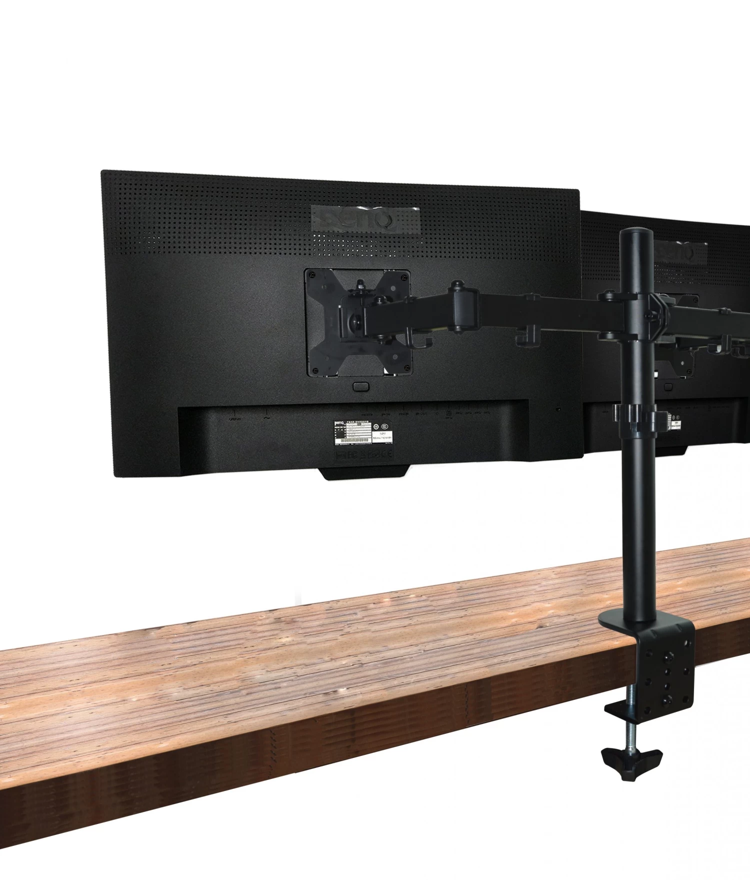 Whether you use dual screens for collaboration or simply to have more online research power, it helps to have a dual desktop mount stand at your workstation. This heavy-duty dual screen mounting stand by Randy & Travis Machinery is the perfect solution.