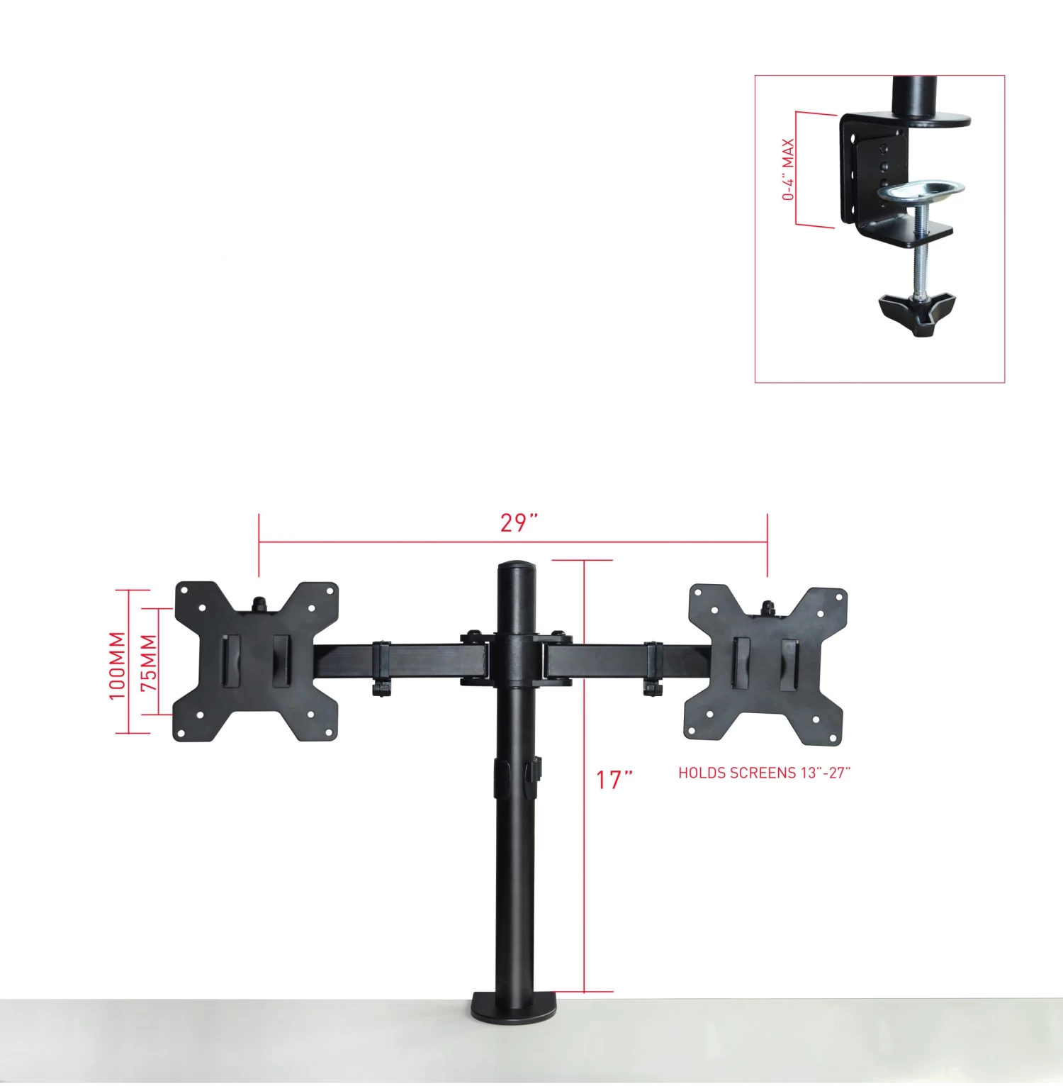1 x Dual LCD Monitor Desk Mount Stand Adjustable Fits 2 Screens Up To 27″