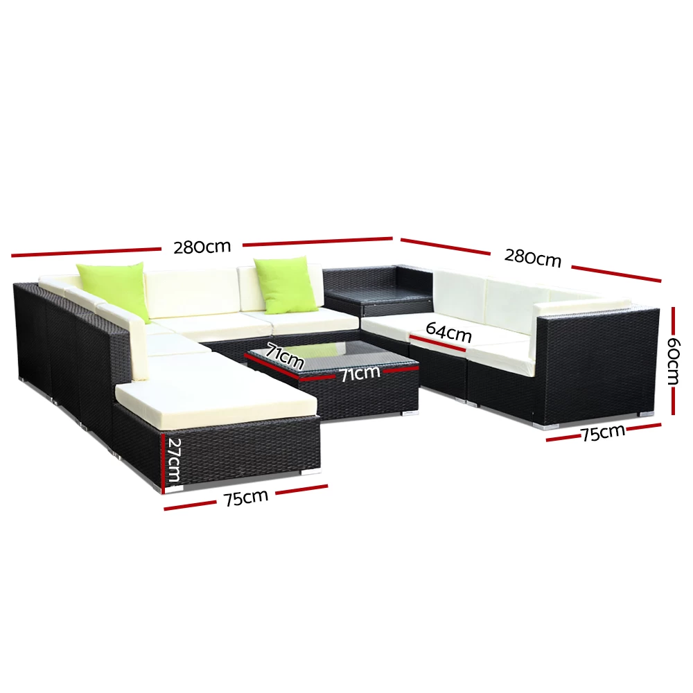 Gardeon 11 Piece Outdoor Furniture Set Wicker Sofa Lounge