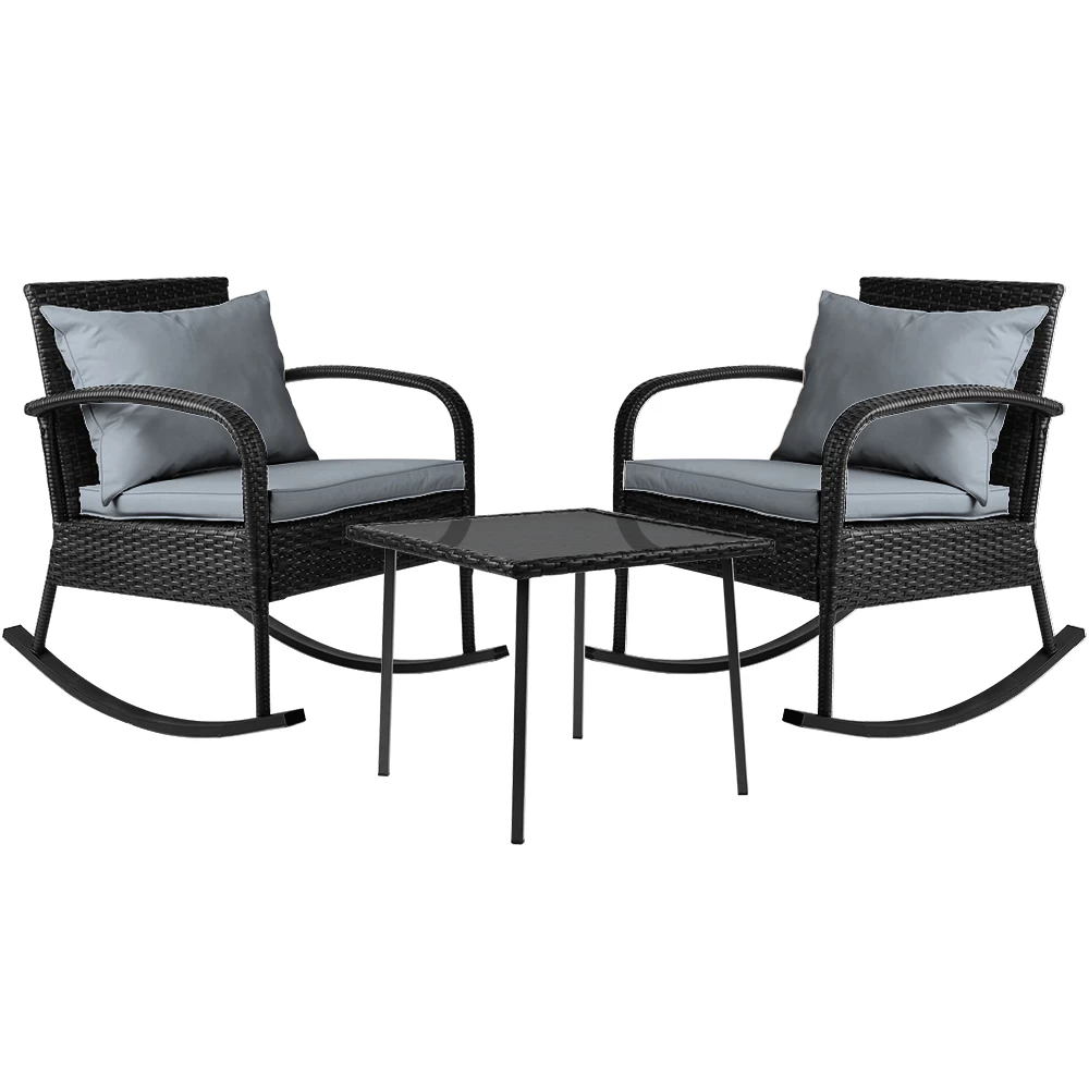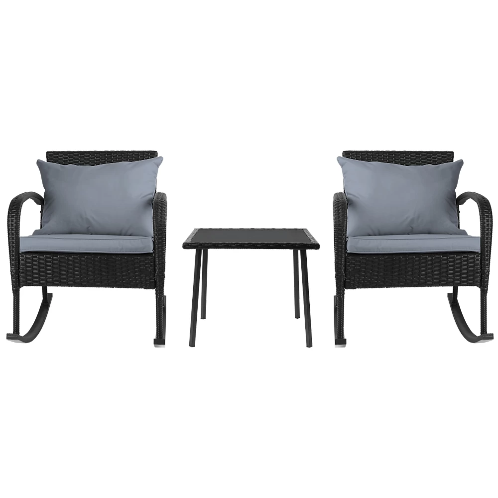 Gardeon 3 Piece Outdoor Chair Rocking Set – Black