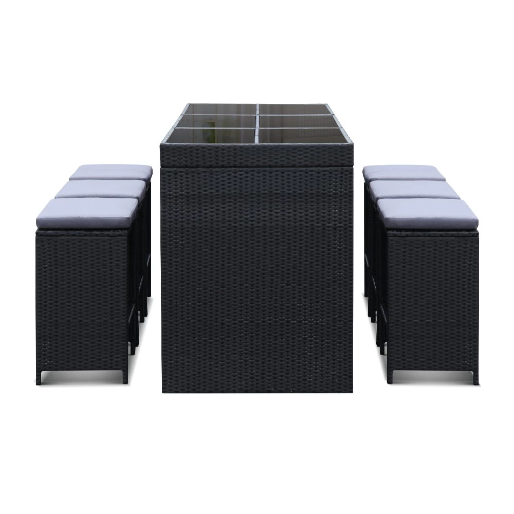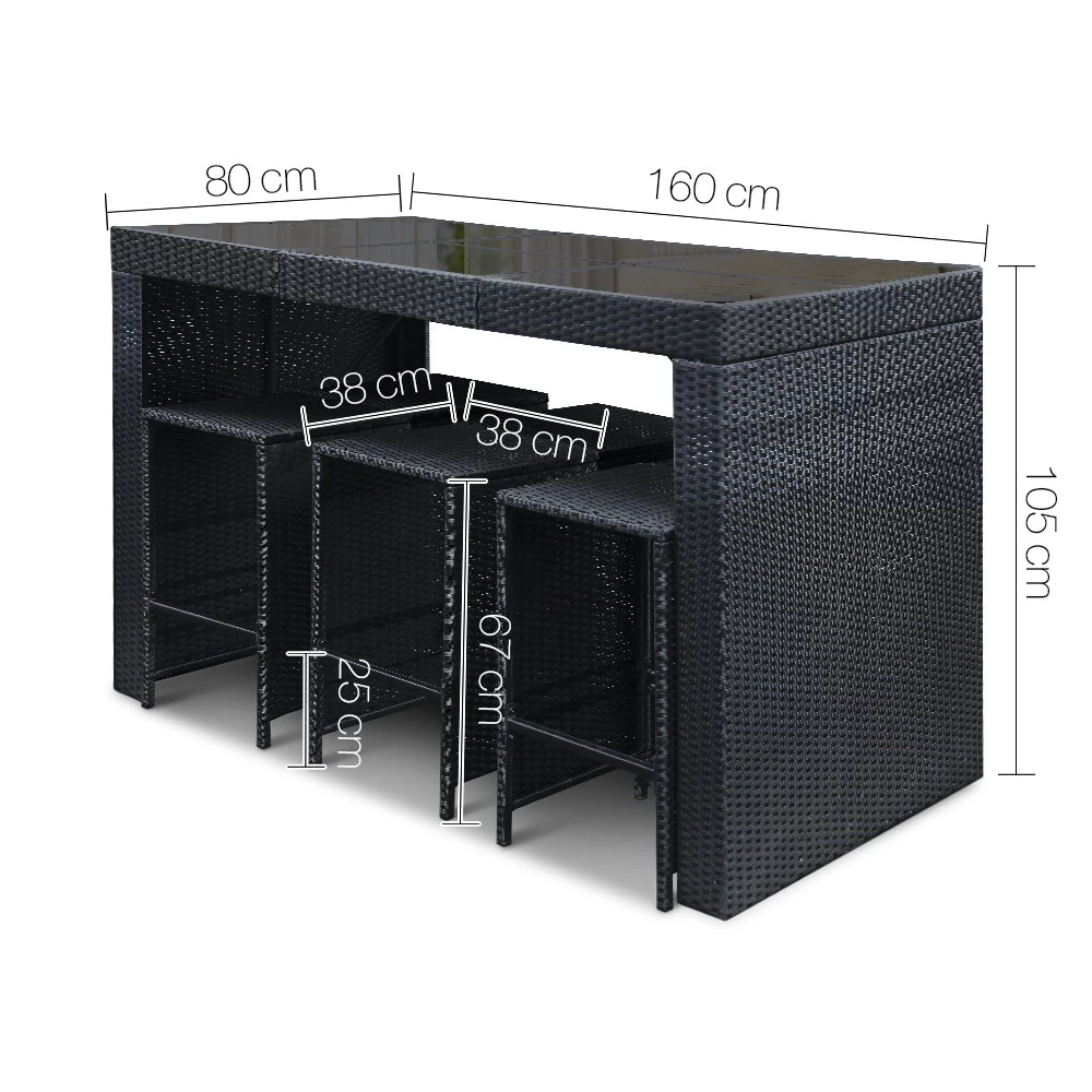 Made from PE wicker and power coated steel, the dining table set is designed to handle