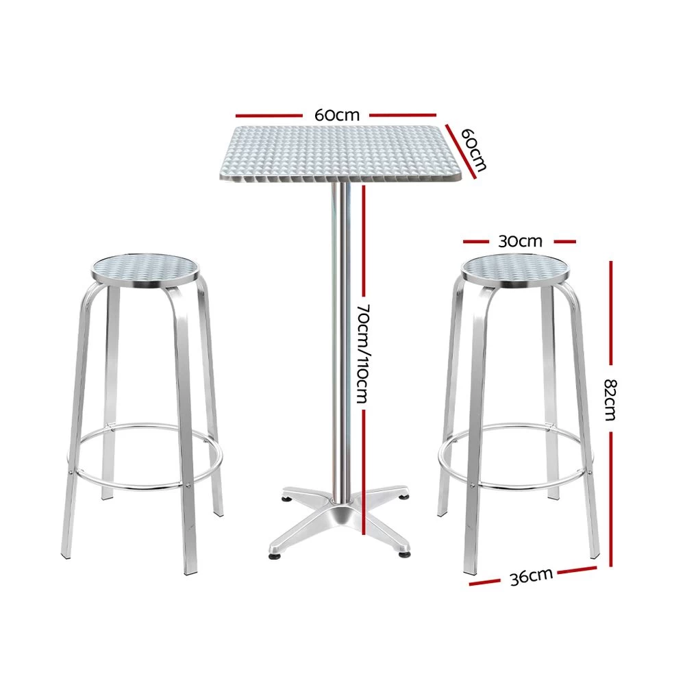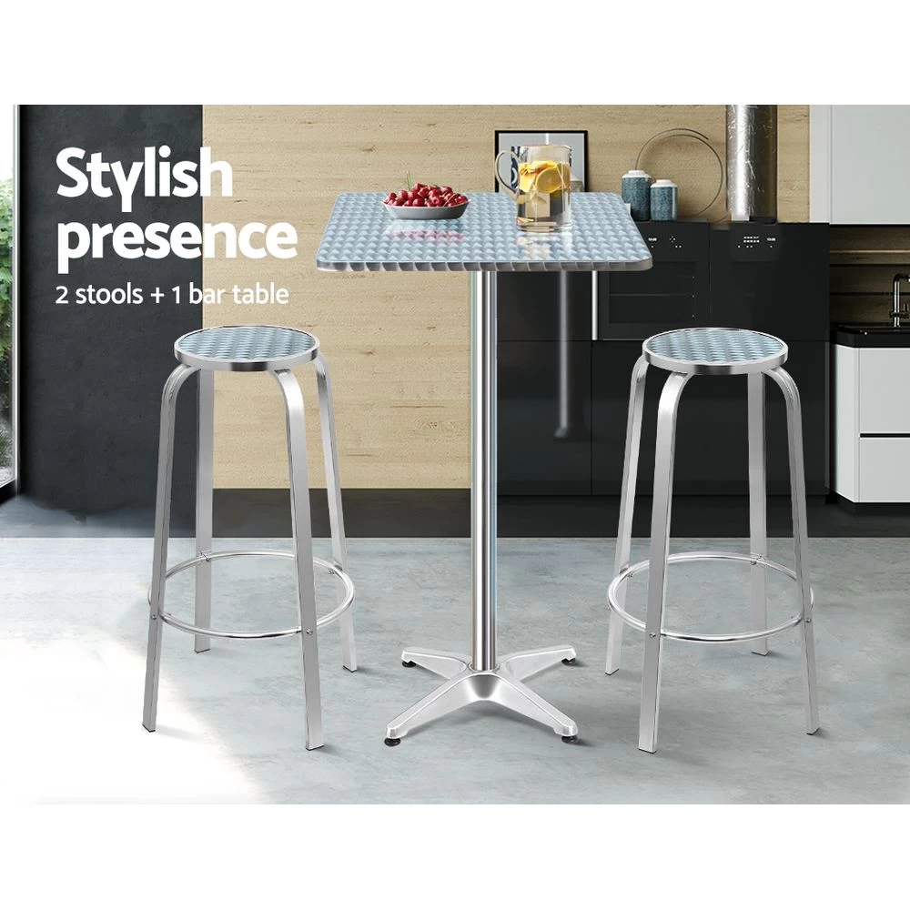 Entertain in style with our contemporary Gardeon 3-piece Bar Set. Comprising two stools and one table, this bar set is stunning in looks and equally as functional. The aluminium stool is flawlessly finished and looks simply stunning from any angle. The eye-catching seat really captures your attention while the upgraded reinforced circular footrest gives the stool an aura of confidence all over. With its aluminium construction, the stool is lightweight and yet strong and sturdy to handle up to 150kg in weight capacity. The matching bar table is height-adjustable and can be set to your preferred height at 70cm or 110cm. The smooth tabletop and sturdy base ensure that your drinks only go down one way and definitely not on the floor. Stowing it away is just as simple as a flick of the quick release lock to fold it away. Perfect for bistros, cafes, pool areas and home patios, our bar set is worth drinking to.