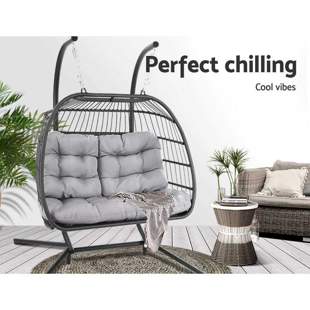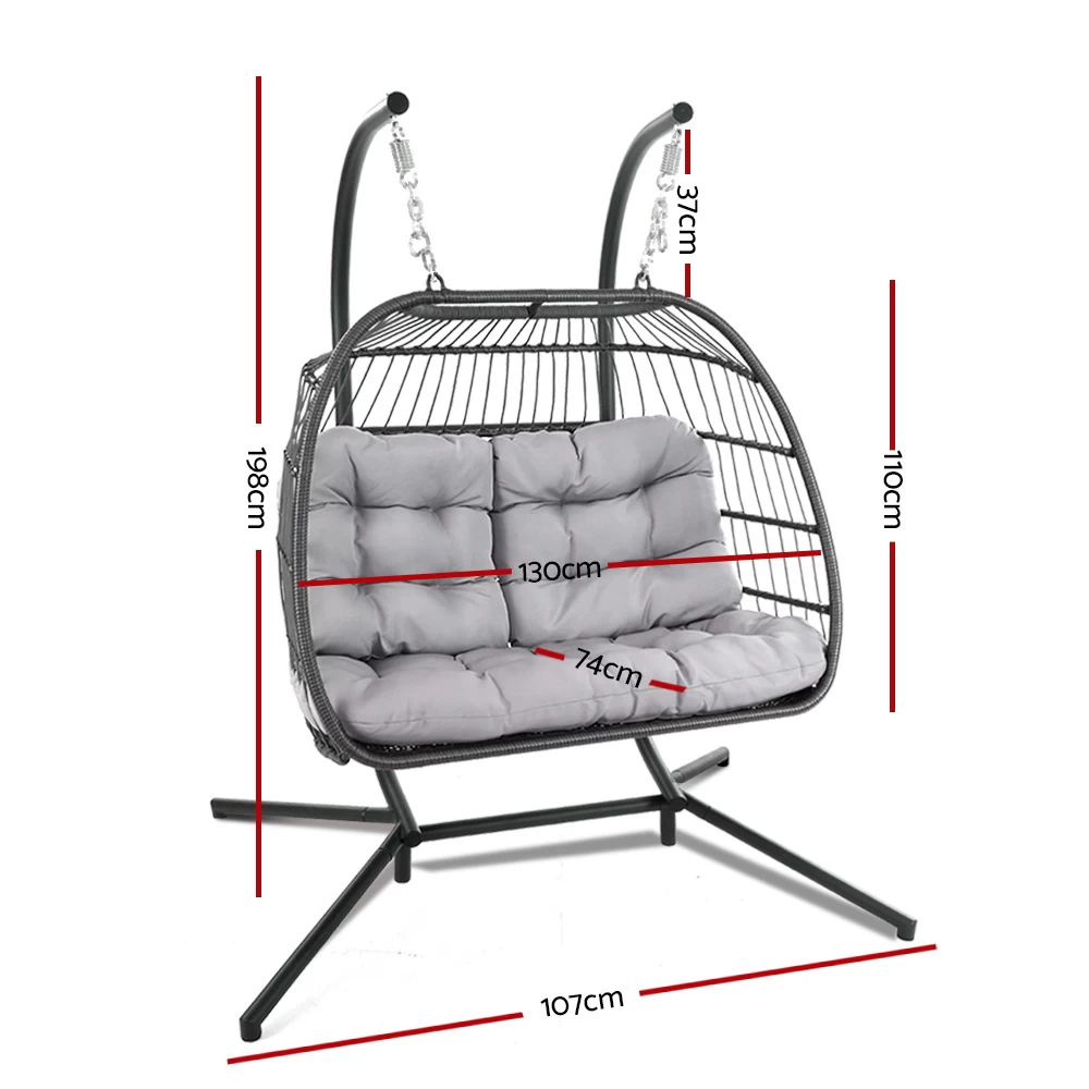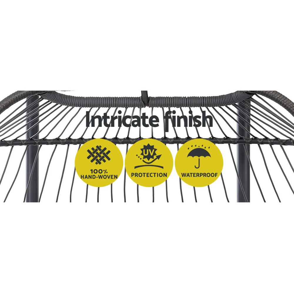 Otherwise known as the hanging egg chair, our Gardeon Double Hanging Pod Chair is the epitome of ultimate relaxation with a cool and exotic vibe. With its 100% hand-woven UV-resistant resin wicker, the pod is beautifully handcrafted and well hung on a steel pole for stability and strength. The powder-coated steel frame finish ensures that corrosion will never be an issue while the soft, inviting cushion offers plush comfort for day dreamers and leisure seekers alike. Best of all, it seats two and has ample space for relaxation with a weight capacity of up to 240kg. Sit back with your loved one and turn an ordinary day into an extraordinary one. Hang cool people!