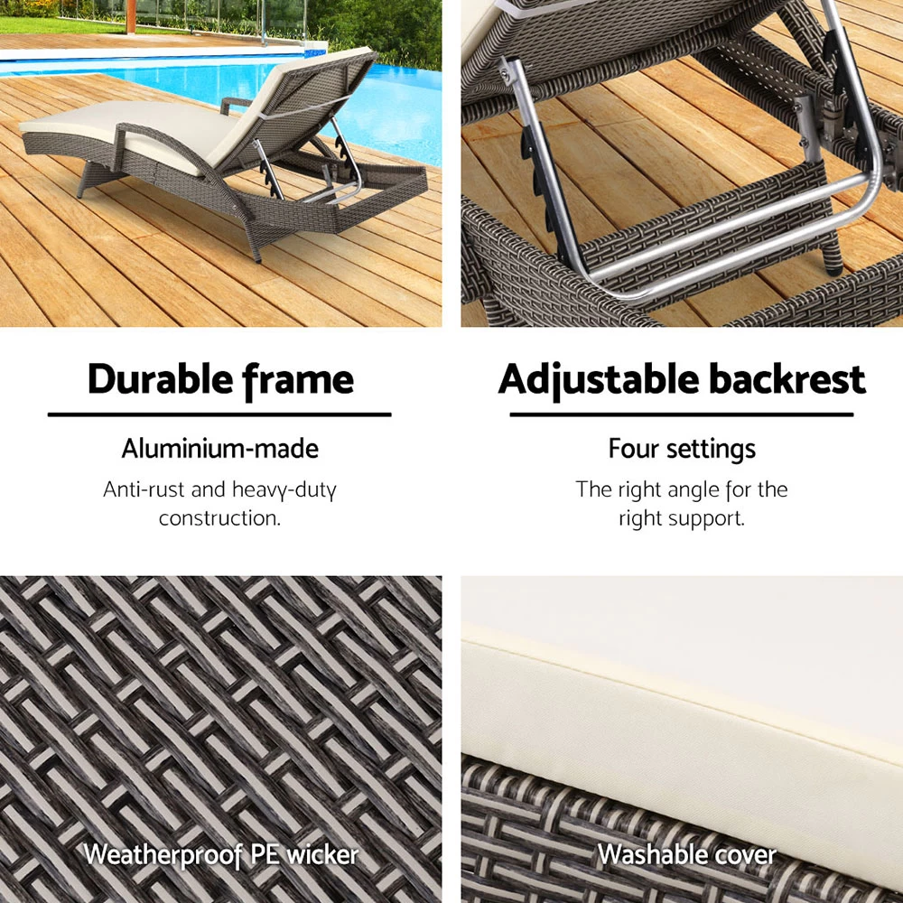 Gardeon Outdoor Sun Lounge Chair with Cushion- Grey