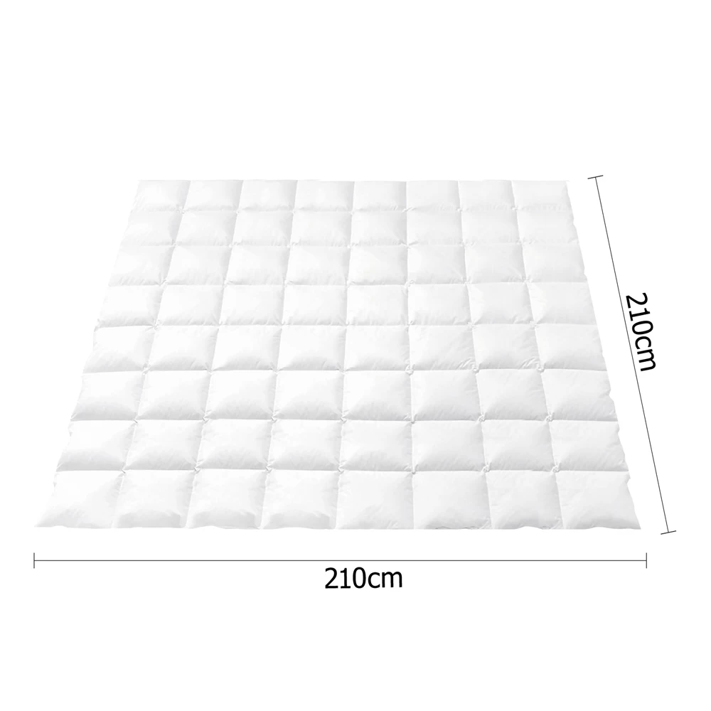 Indulge in luxury comfort with our finely constructed Giselle Bedding Goose Down Feather Quilt. It is the perfect quilt to provide you with seasonal comfort and a great feeling at all times. Filled with goose down feathers with 800gsm weight, the quilt embodies a baffle construction that prevents shifting of the filling and helps to expand the down to retain heat, providing optimal warmth. The goose down feathers are lightweight and provide true warmth without added weight. Plus, the quilt is mite and mould-resistant and easy to maintain. Not least, the cover itself is 100% pure cotton with a 233 thread count for exceptional quality.
