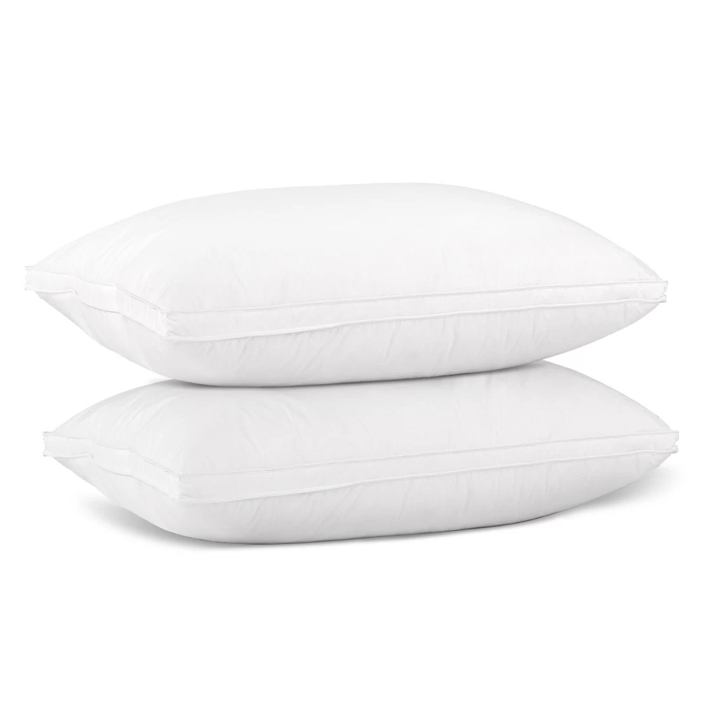 The pillows have close to one kg of fluffy goose feathers and down to provide ample head and neck support. The feathers provide firm support and durability and ensures soft comfort, additionally, the pillows are finished in a 100% cotton shell.