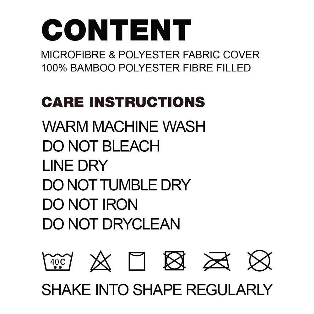* Filling: 50% bamboo fibre and 50% hollow fibre