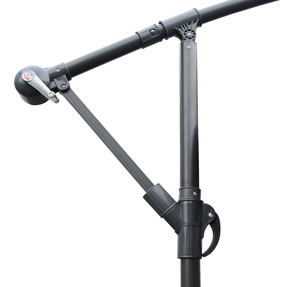 Featuring a high quality waterproof and UV-resistant polyester fabric, cantilever side column with a top diameter of 3 meters, this Cantilevered Outdoor Umbrella can provide the maximum shading space. Better yet, you can adjust the shading Angle according to the sun’s orientation. It’s easy to open and close with a user-friendly cranking system. The power-coated 8-rib top supports and supporting pole are for toughness while the steel base can be readily bolted in place or weigh down. Go outdoor and have fun with our Cantilevered Outdoor Umbrella.