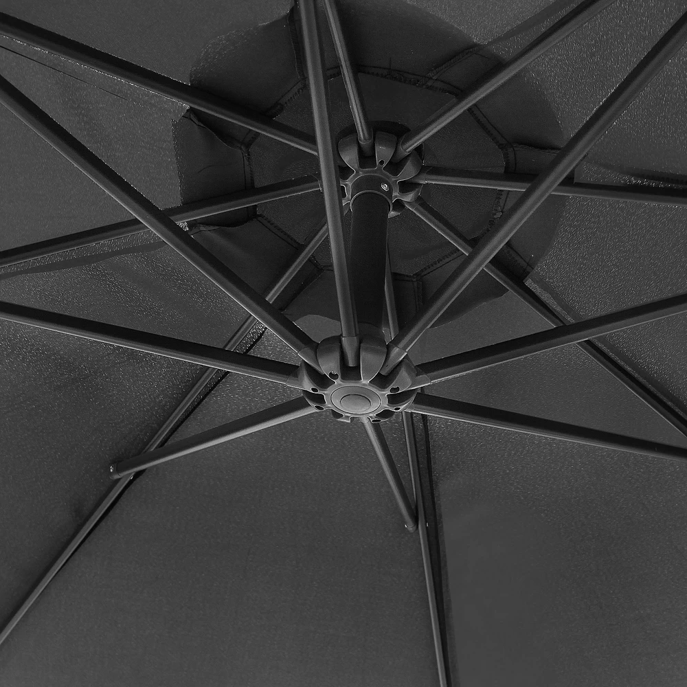 Featuring a high quality waterproof and UV-resistant polyester fabric, cantilever side column with a top diameter of 3 meters, this Cantilevered Outdoor Umbrella can provide the maximum shading space. Better yet, you can adjust the shading Angle according to the sun’s orientation. It’s easy to open and close with a user-friendly cranking system. The power-coated 8-rib top supports and supporting pole are for toughness while the steel base can be readily bolted in place or weigh down. Go outdoor and have fun with our Cantilevered Outdoor Umbrella.