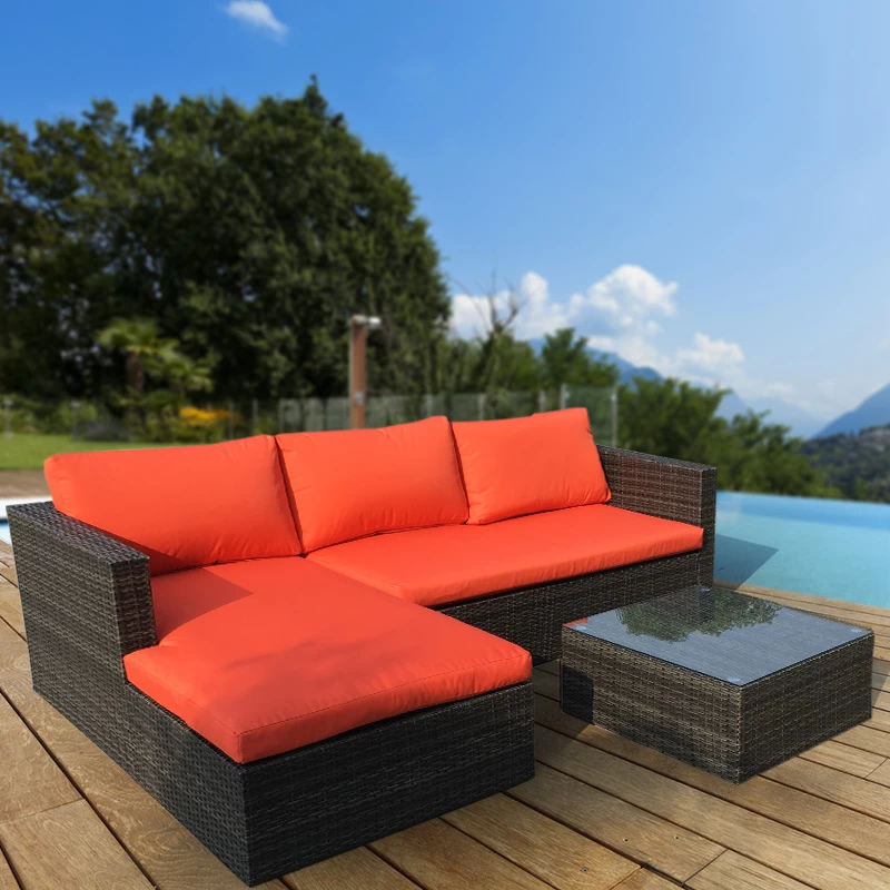 Malibu 3pc sofa set with chaise provides elegance, comfort and practicality for your outdoor area.