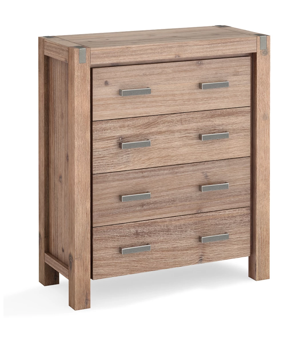 Constructed with Solid and Veneered Acacia panels, Nowra tallboy has a simple appearance which will be convenient for those who want a neat and minimal look in their home. This classic tallboy would look highly antique in any bedroom and provide lots of functional storage space for all your folded clothing.
