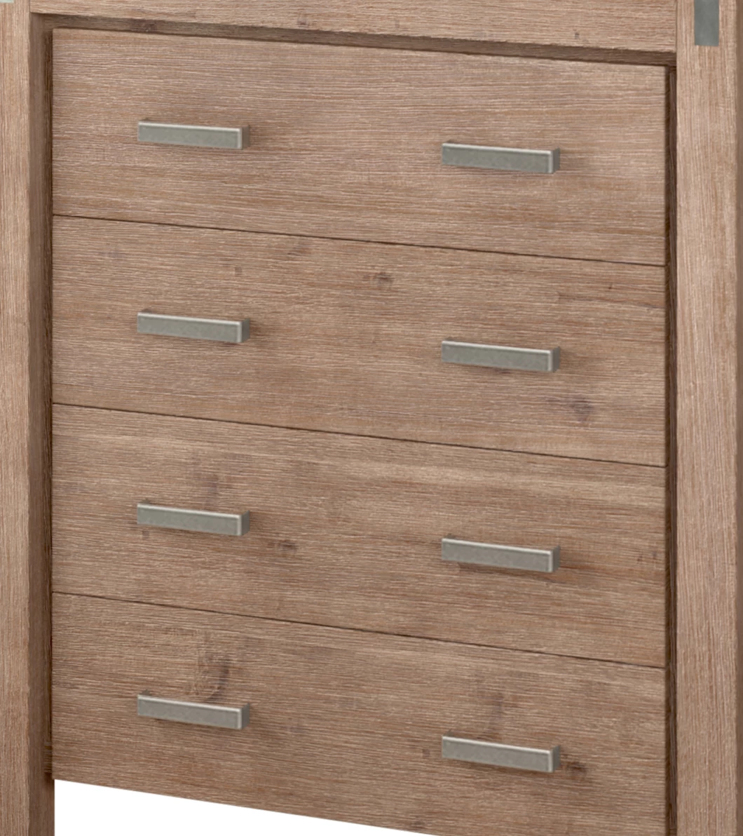 There is a metal made design on the both sides of the tallboy to offer a matching look with the handles. Nonetheless, metal wire brushed finish is given to it for a rustic look.