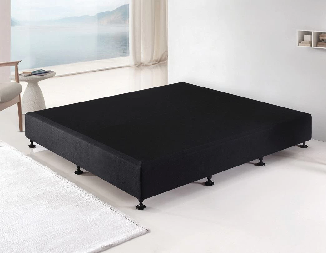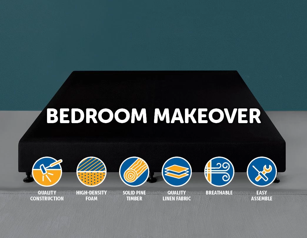 1 x Palermo King Ensemble Bed Base Midnight Black Linen Fabric
