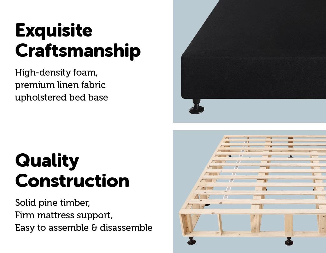 - Materials: Solid pine timber, high-density foam, and premium linen fabric upholstered bed base