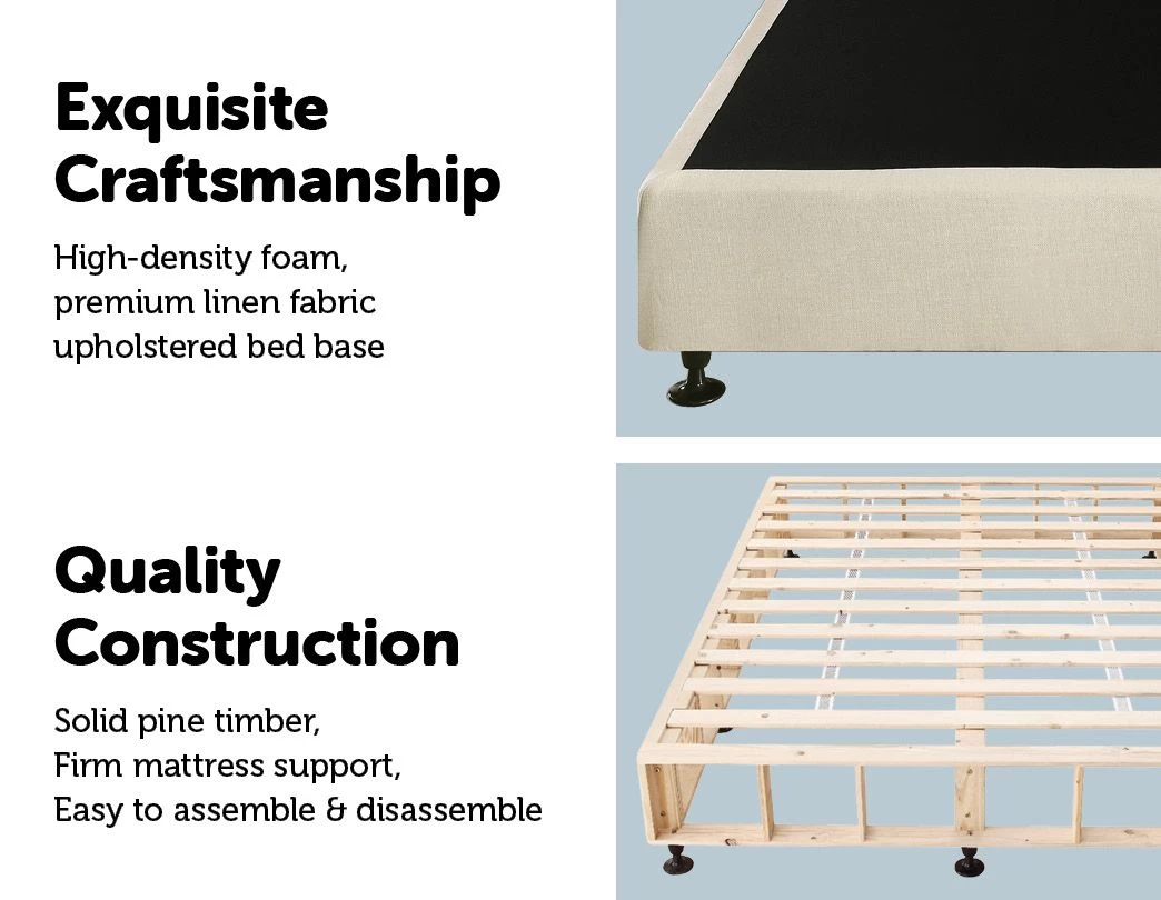 - Materials: Solid pine timber, high-density foam, and premium linen fabric upholstered bed base