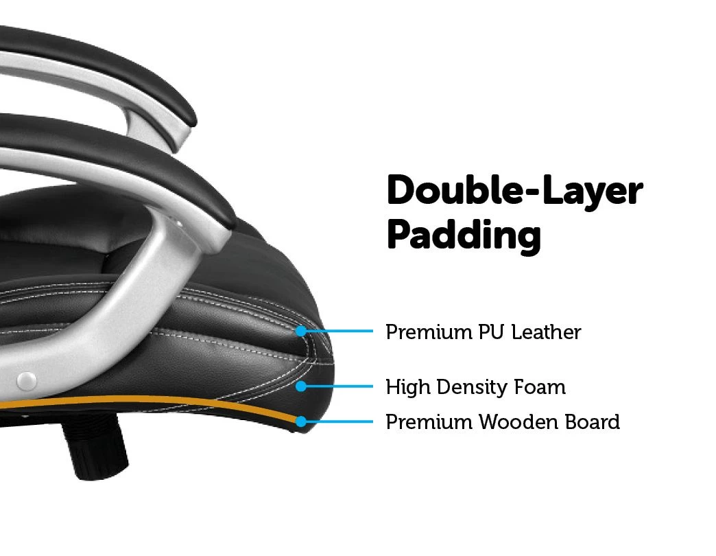 This office chair in all-black features quality craftsmanship that translates into durability and comfort. A premium PU leather has been chosen for its resilience and for its look and feel. This material is hassle-free; just wipe with a soft cloth to keep it looking fresh and new. And its classic design is sure to turn heads and impress clients.