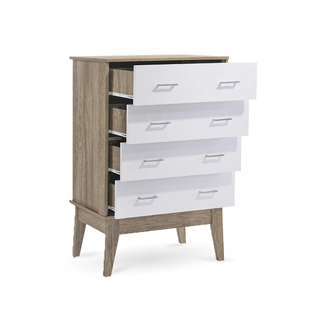 Immerse yourself into a home of luxury living with our exclusive Scandinavian inspired 4 drawers tallboy. With the beautiful contrast of our signature oak and clean white colour, this tallboy is designed with the sole purpose to stand out immediately and brighten up your home. Yet with light colour carefully put into the design, it will blend in practically any home colour scheme.